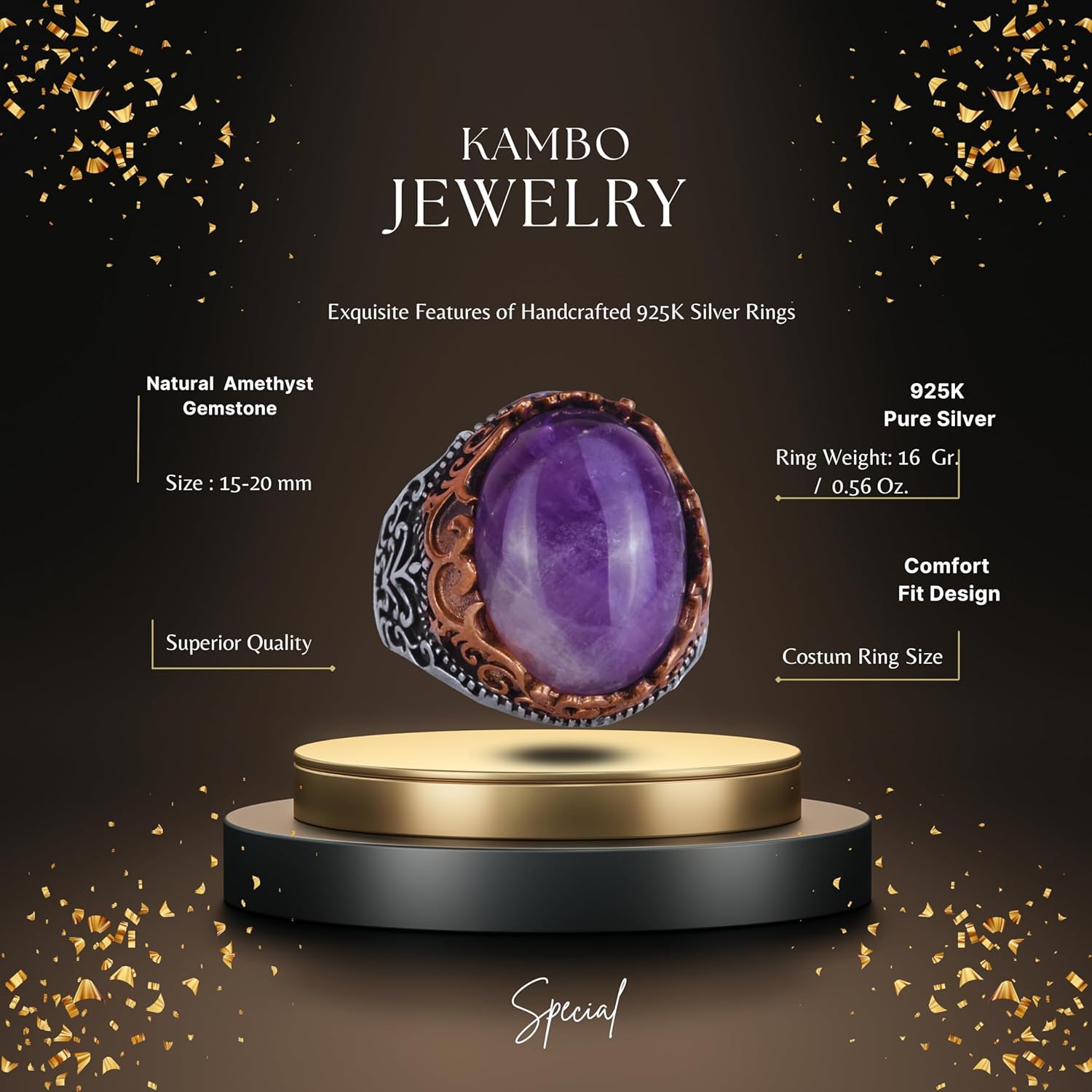 Gerçek Doğal Taş El Yapımı Yüzük - 925 Ayar Gümüş El Yapımı Yüzük - Şık Yüzük (Ametist)