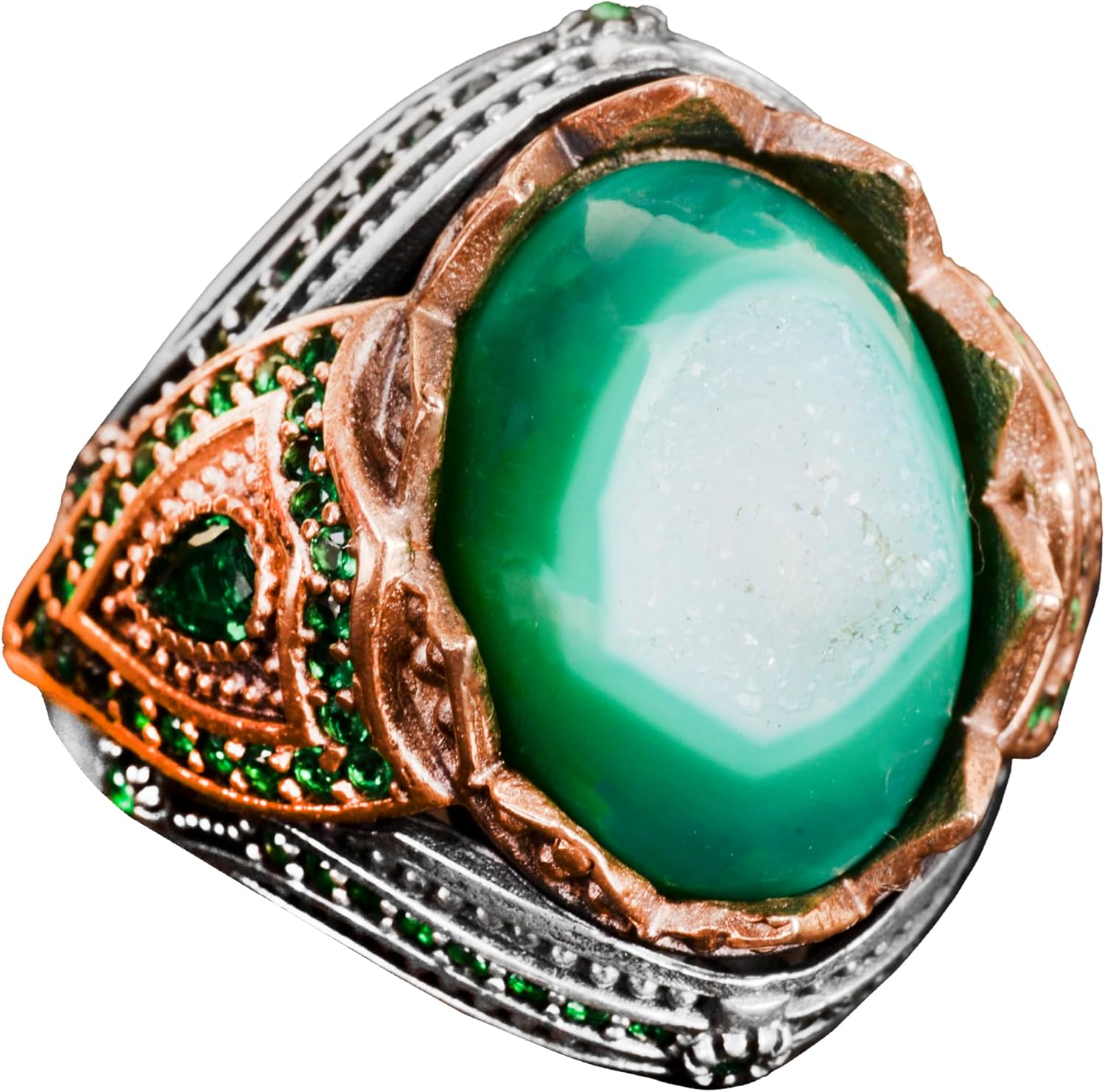 Gerçek Doğal Taş El Yapımı Yüzük - 925 Ayar Gümüş Şık Yüzük (Drusy Kuvars)