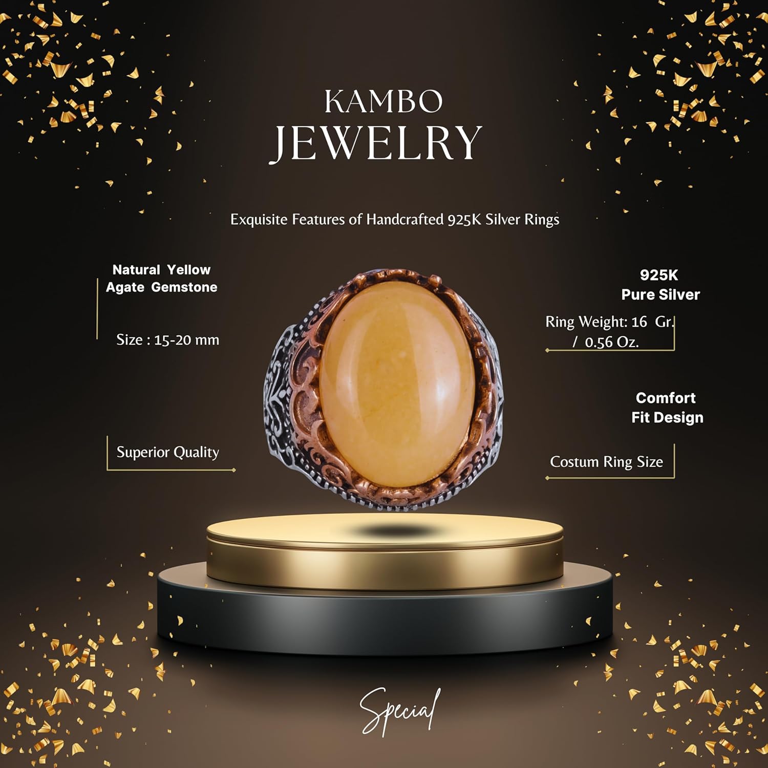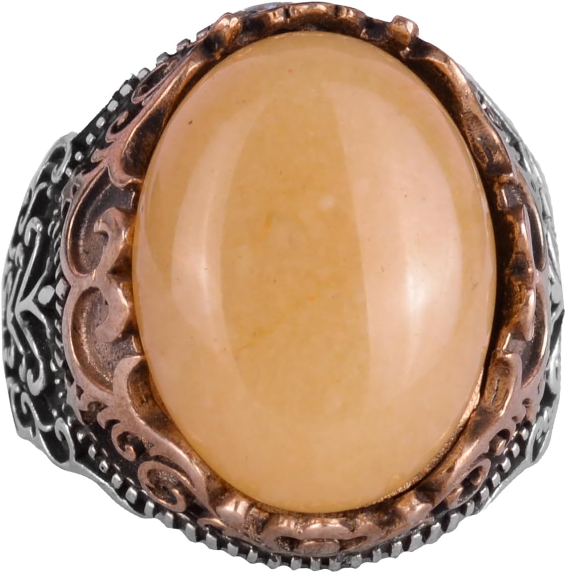 Gerçek Doğal Taş El Yapımı Yüzük - 925 Ayar Gümüş El Yapımı Yüzük - Şık Yüzük (Sarı akik)