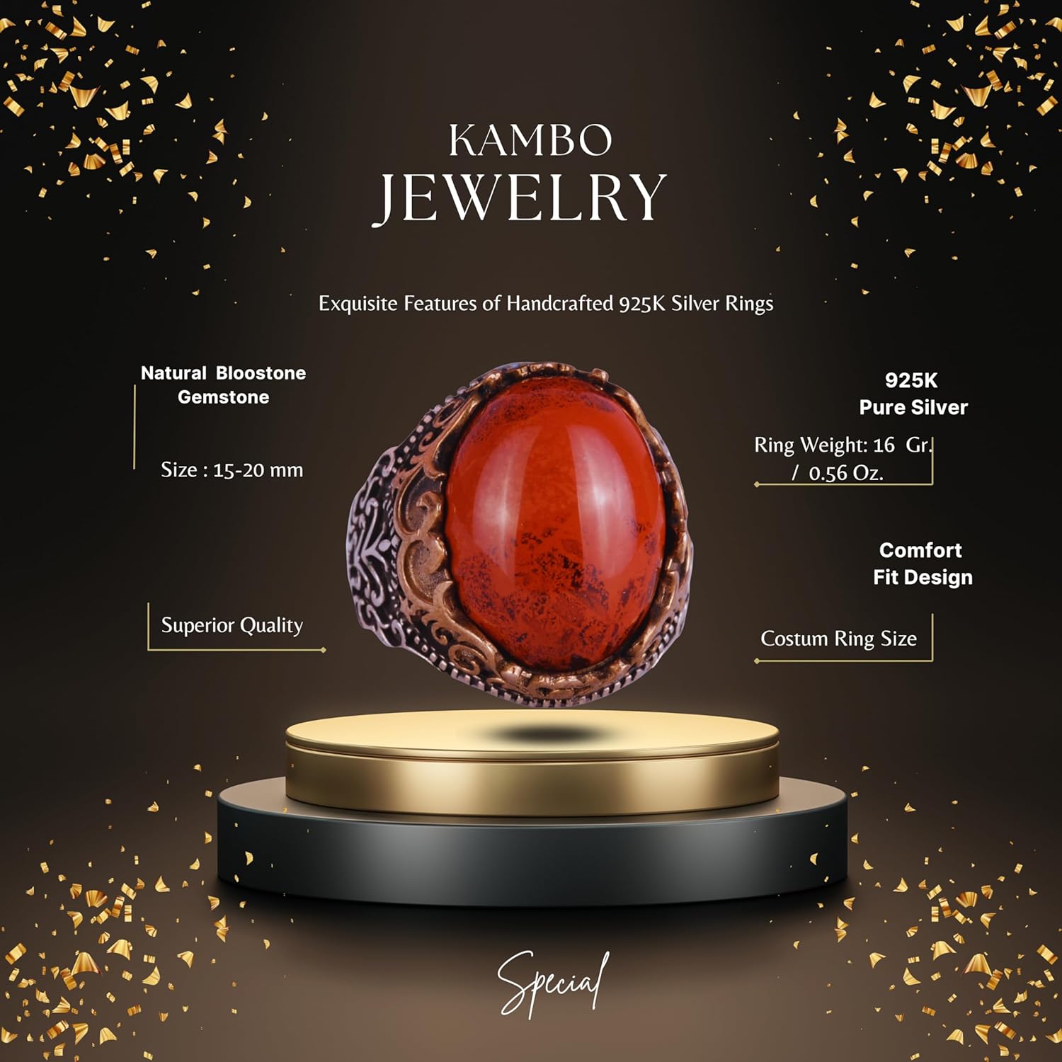 Gerçek Doğal Taş El Yapımı Yüzük - 925 Ayar Gümüş El Yapımı Yüzük - Şık Yüzük (Kırmızı kan taşı)