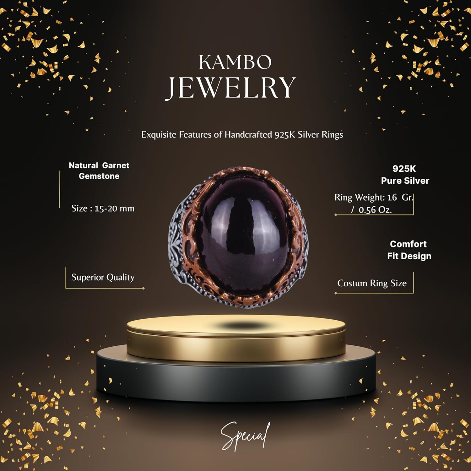 Gerçek Doğal Taş El Yapımı Yüzük - 925 Ayar Gümüş El Yapımı Yüzük - Şık Yüzük (Granat)