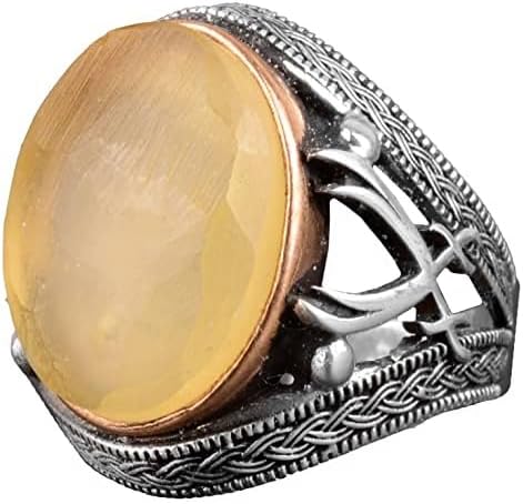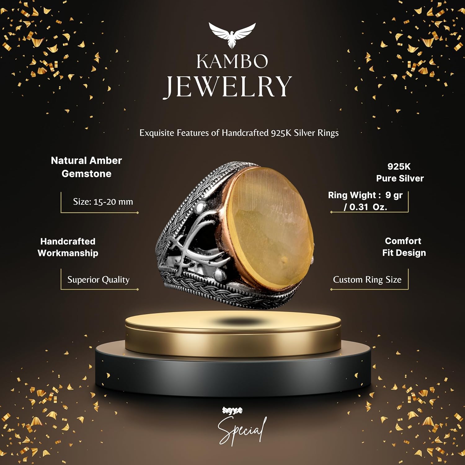 Gerçek Doğal Taş Erkek Yüzüğü, Kılıç Yüzüğü, 925 Ayar Gümüş Erkek Yüzüğü (Kehribar)