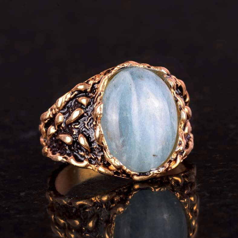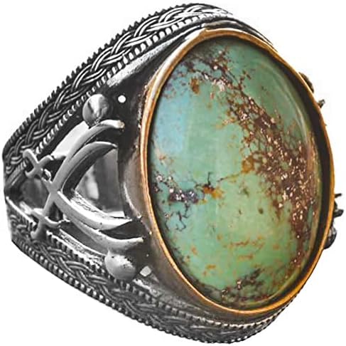Gerçek Doğal Taş Erkek Yüzük, Kılıç Yüzüğü, 925 Ayar Gümüş Erkek Yüzük (Turkuaz)