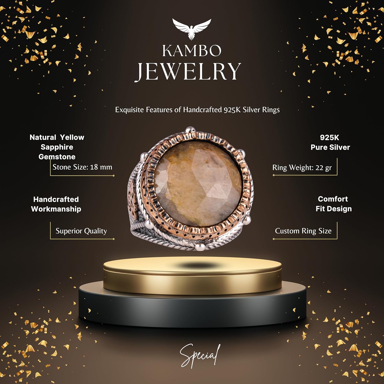 Gerçek Doğal Taş El Yapımı Yüzük - 925 Ayar Gümüş Yüzük (Sarı Safir)