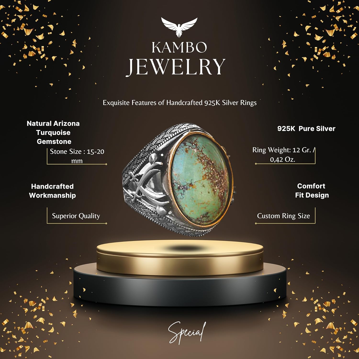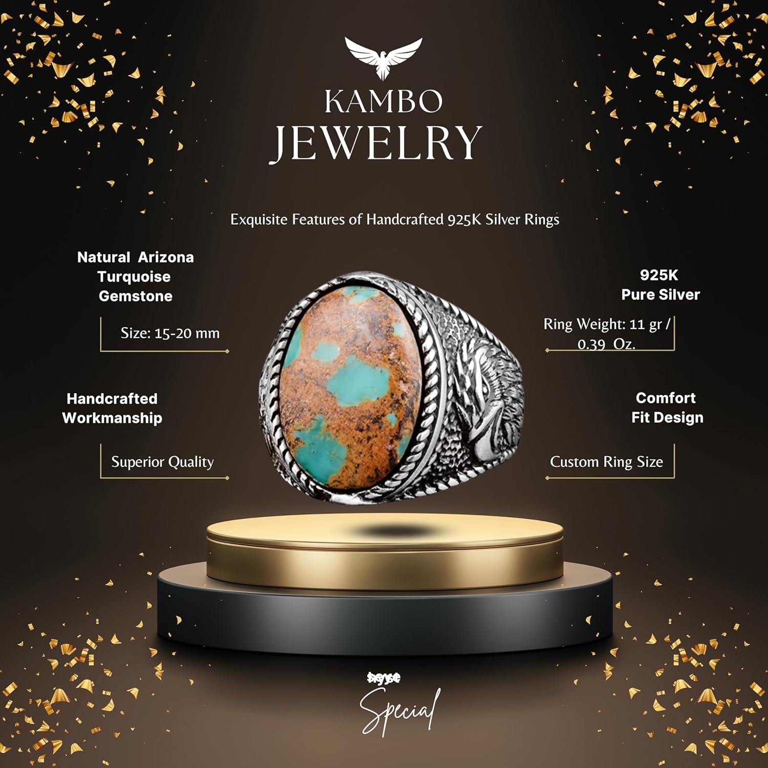Gerçek Doğal Taş Erkek Yüzük, Kartal Yüzük, 925 Ayar Gümüş Yüzük (Turkuaz)