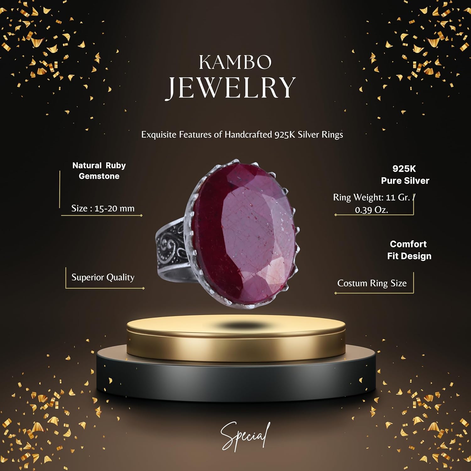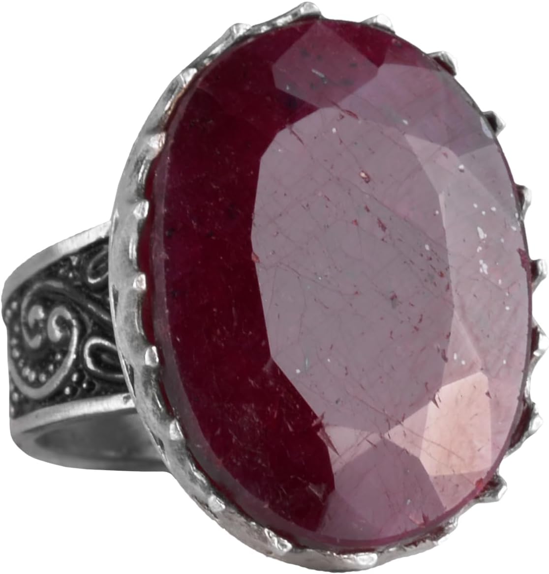 Gerçek Doğal Taş Yüzüğü - 925 Ayar Gümüş Büyük Yüzük - El Yapımı Yüzük (Yakut)