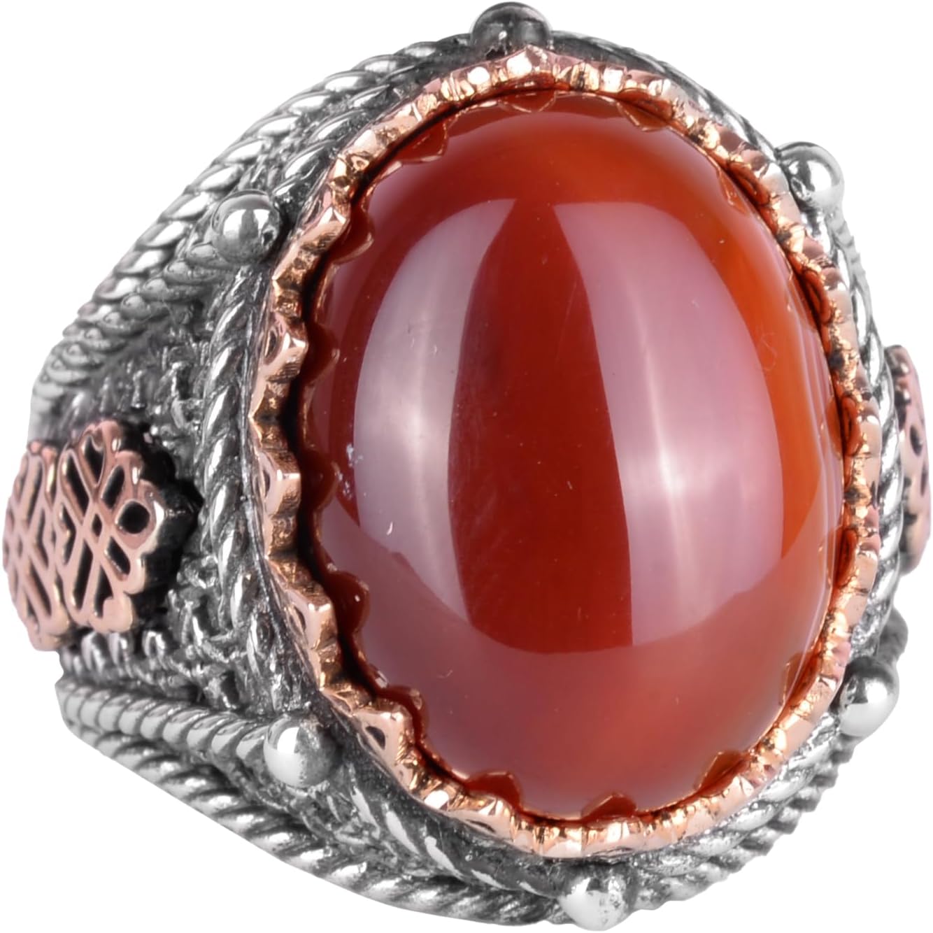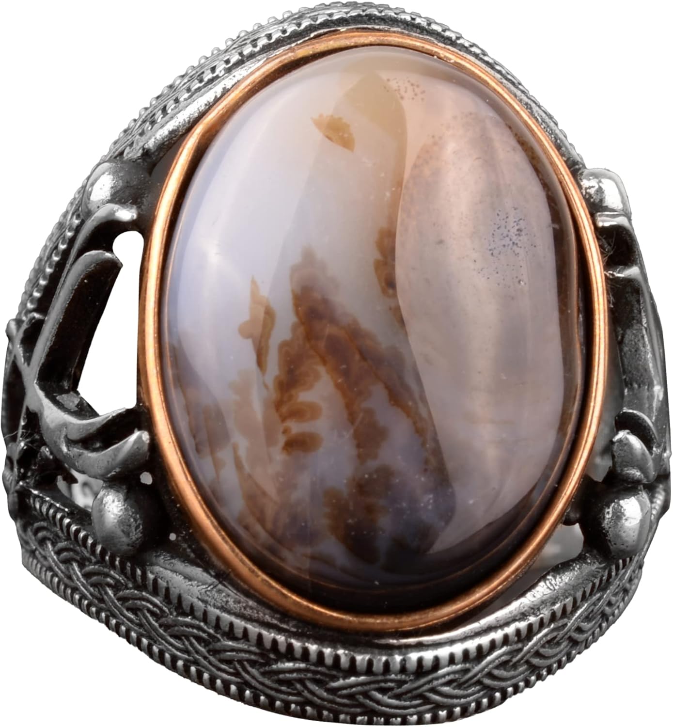 Gerçek Doğal Taş Gümüş Yüzük, El Yapımı Erkek Takısı, 925 Ayar Gümüş Yüzük