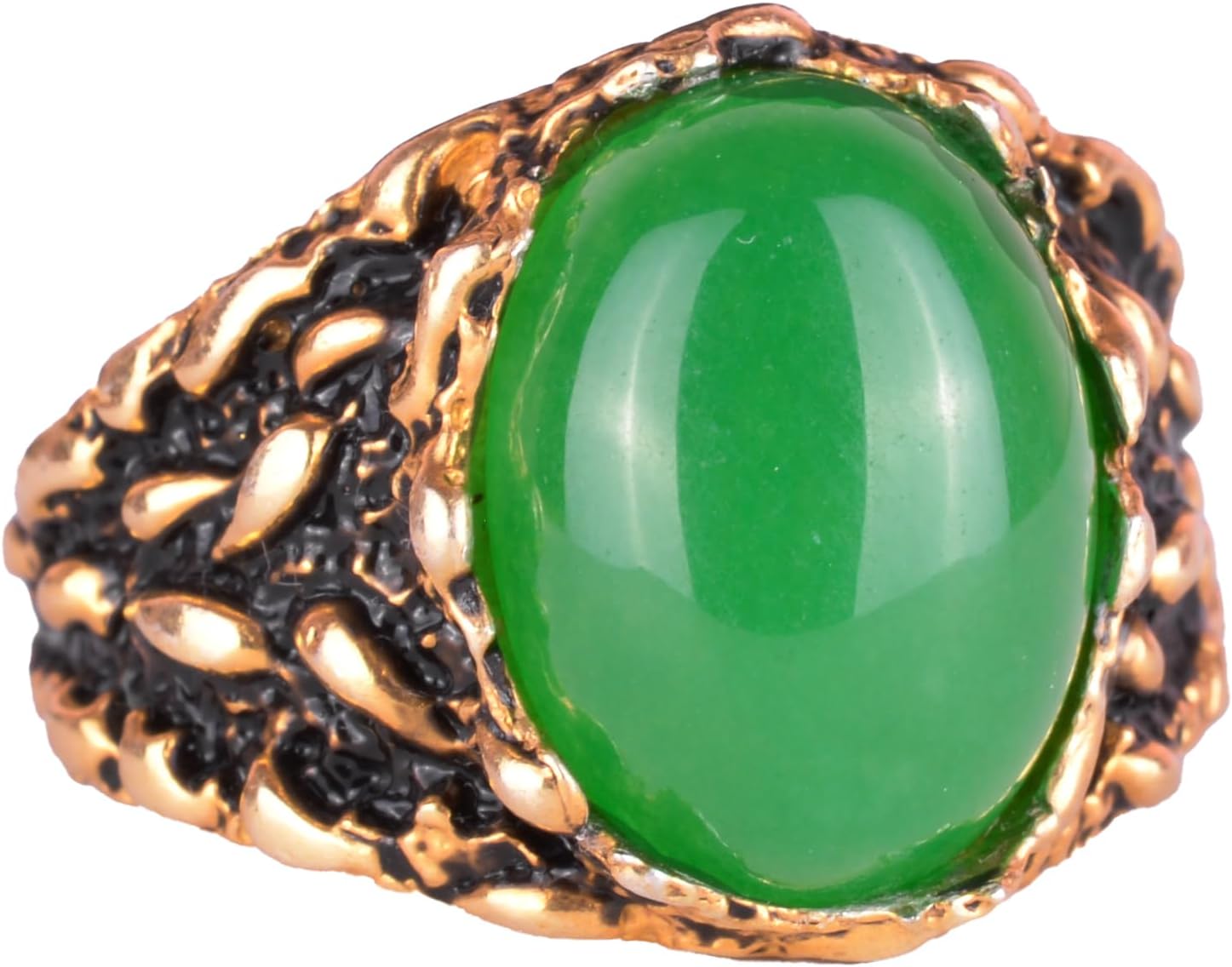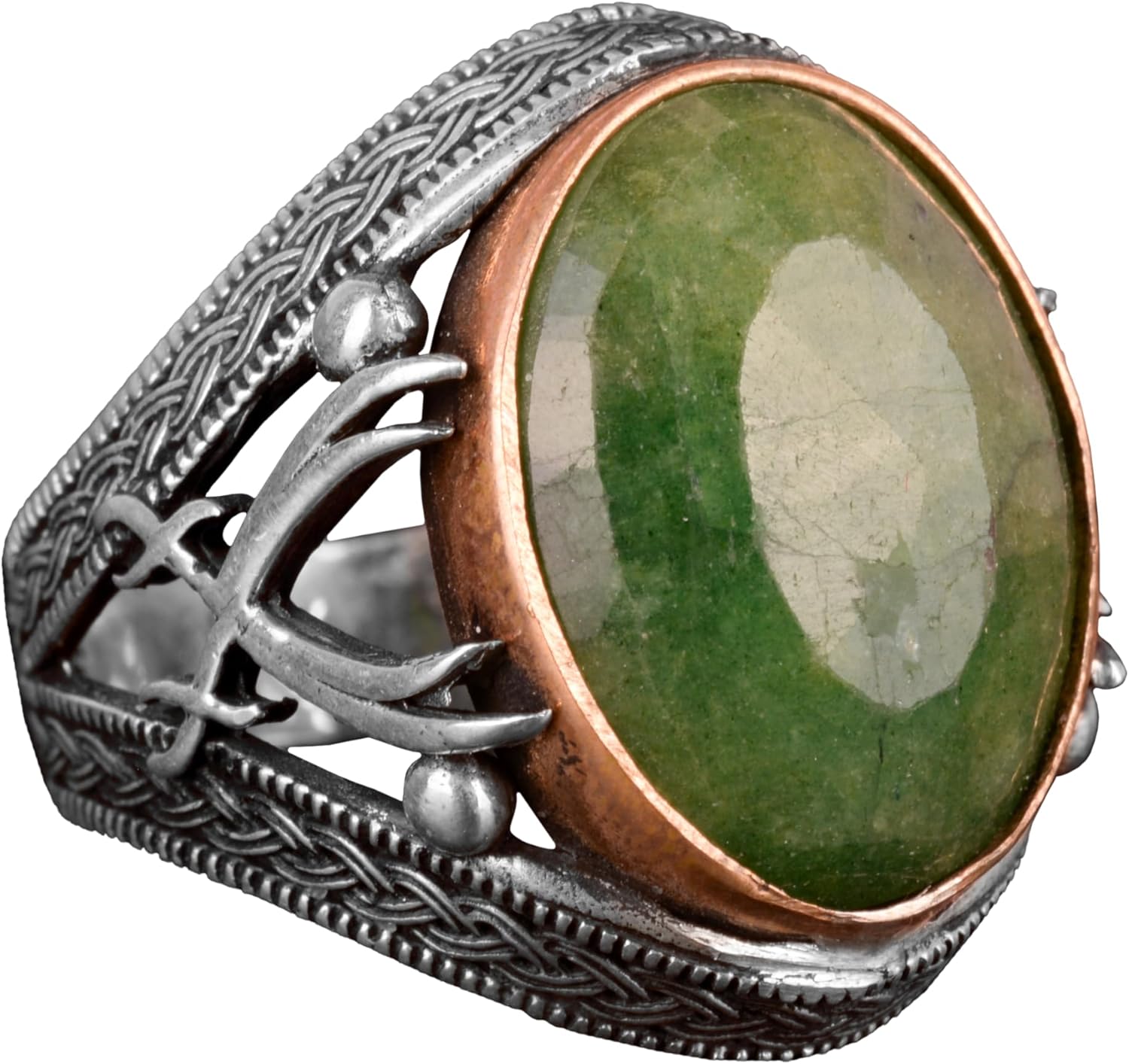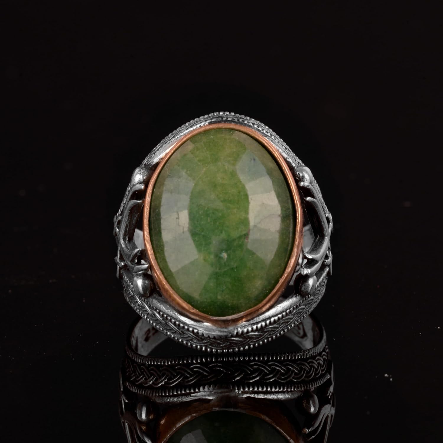 Gerçek Doğal Taş Erkek Yüzük, Kılıç Yüzüğü, 925 Ayar Gümüş Erkek Yüzük (Zümrüt)