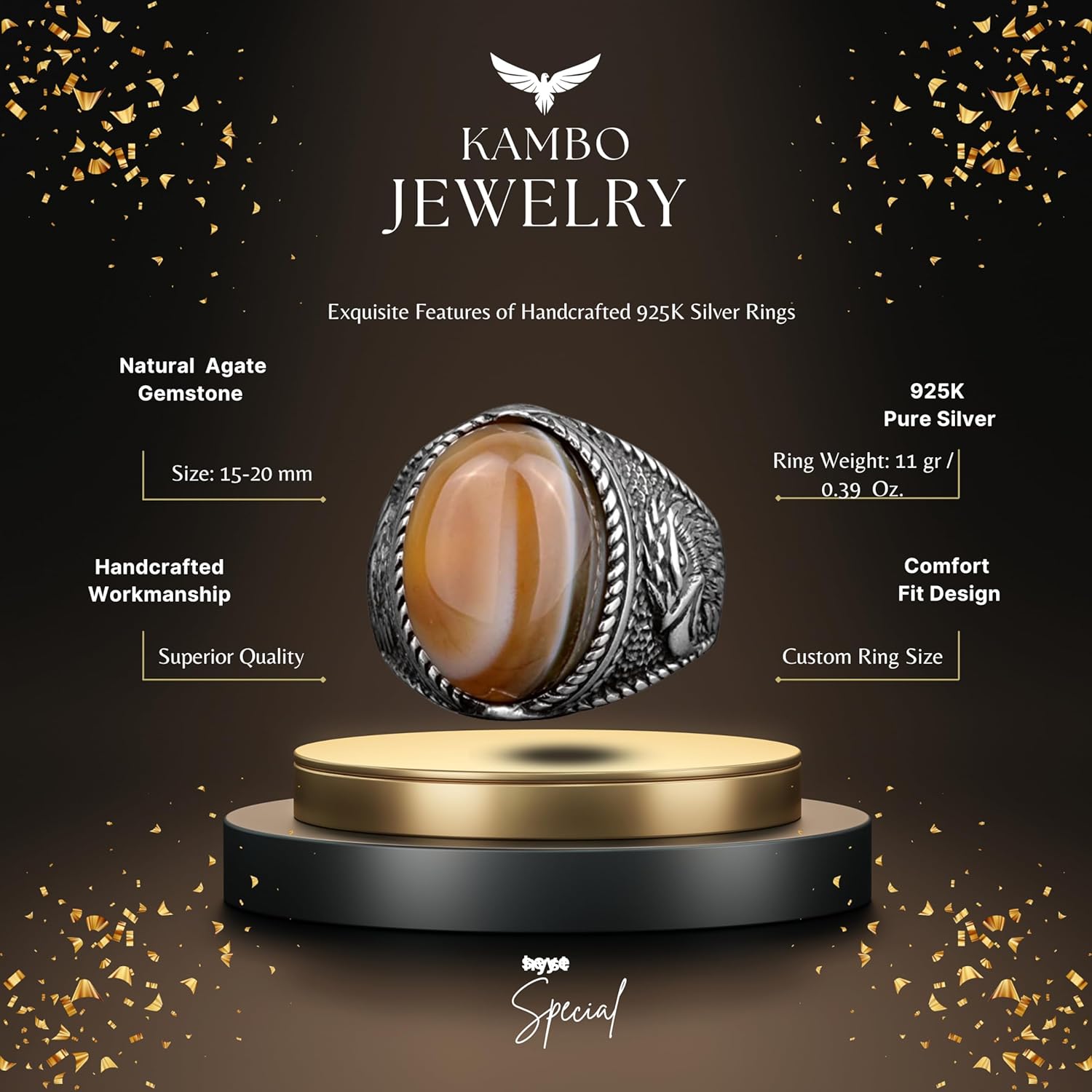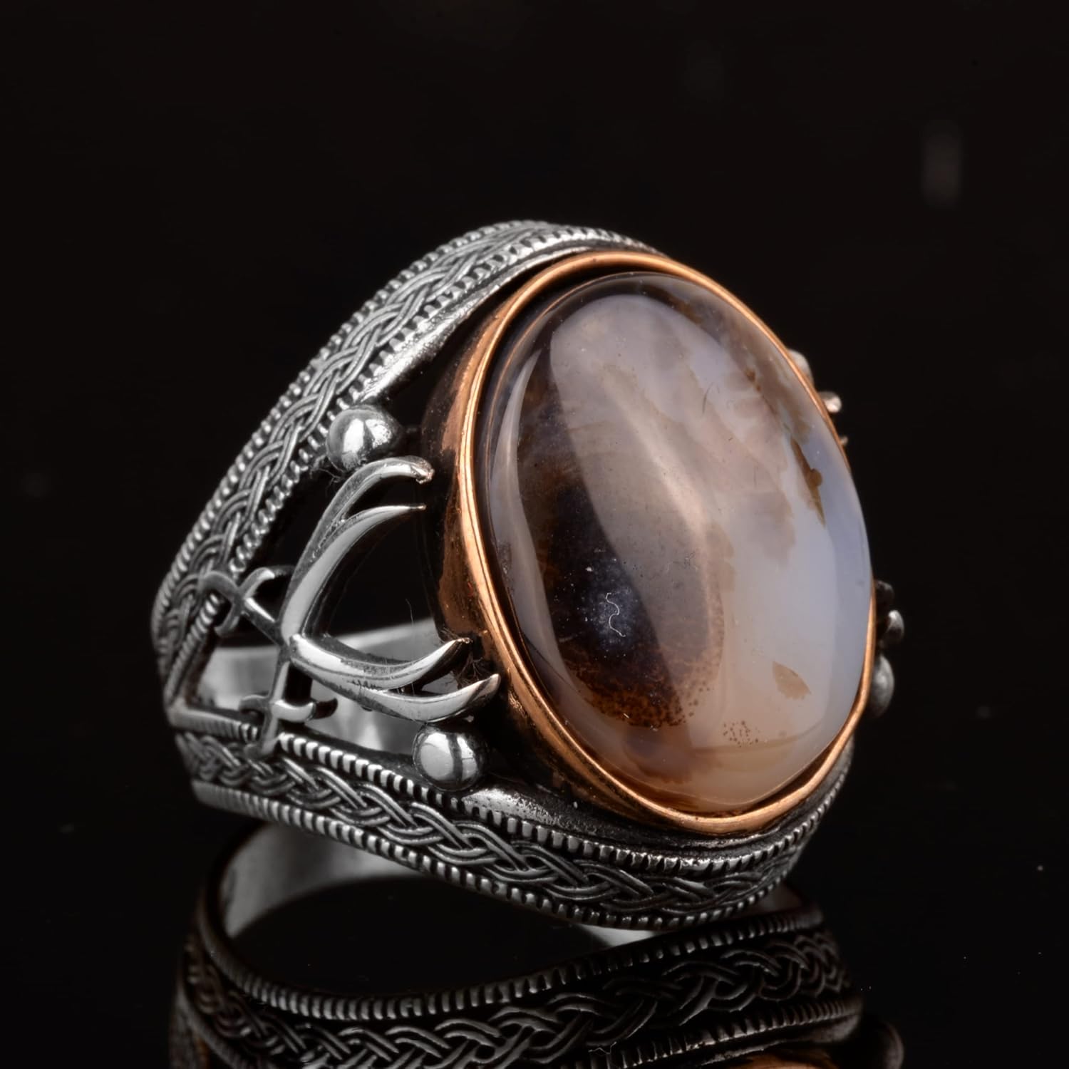 Gerçek Doğal Taş Erkek Yüzüğü, Kartal Yüzüğü, 925 Ayar Gümüş Yüzük (Akat)