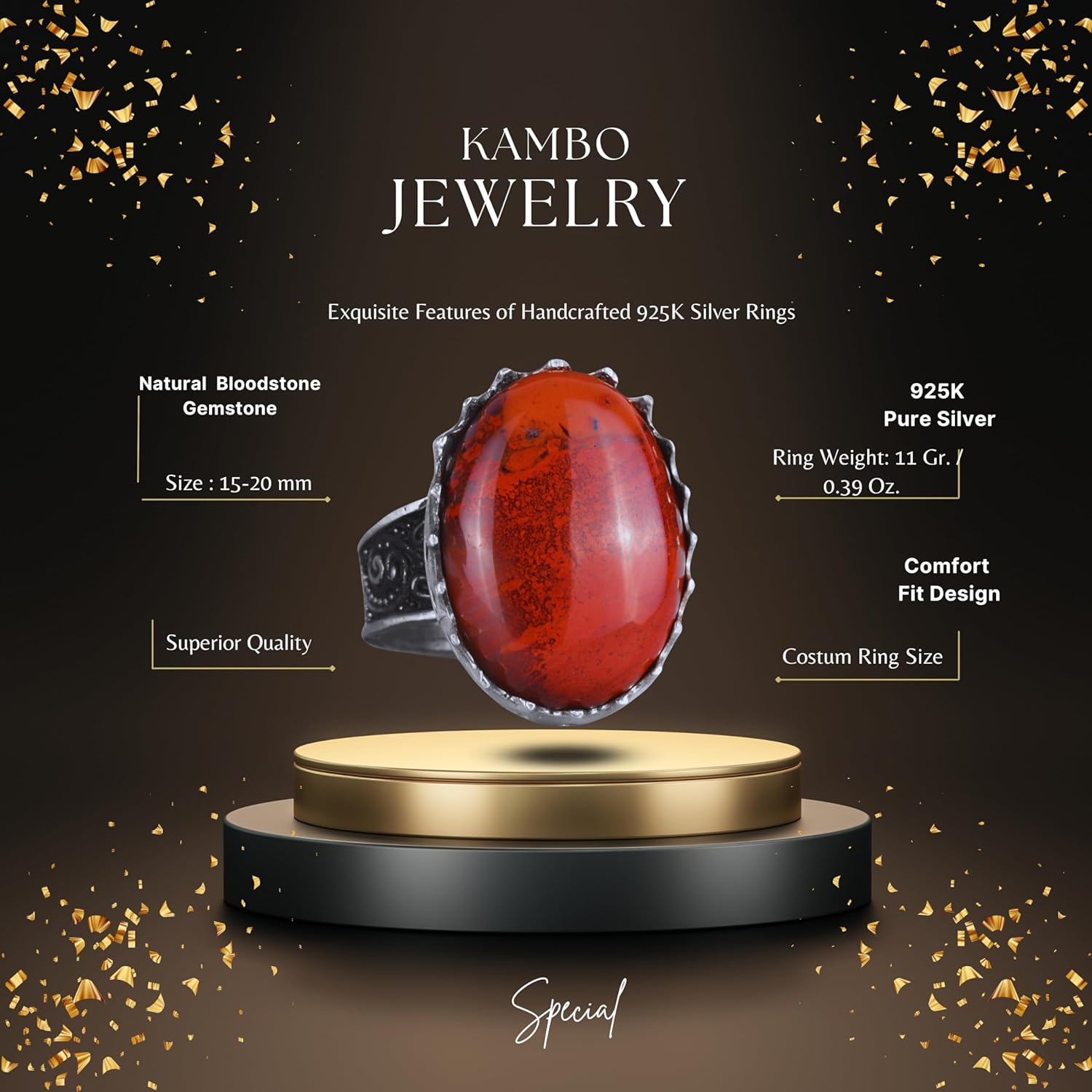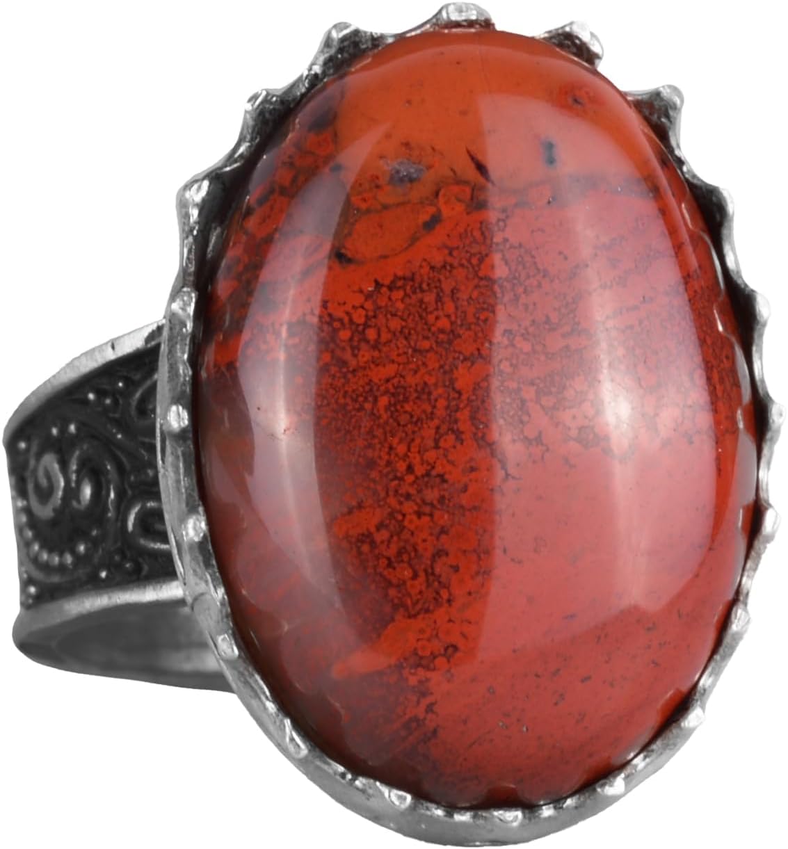 Gerçek Doğal Taş Yüzük - 925 Ayar Gümüş Büyük Yüzük - El Yapımı Yüzük (Kırmızı kan taşı)