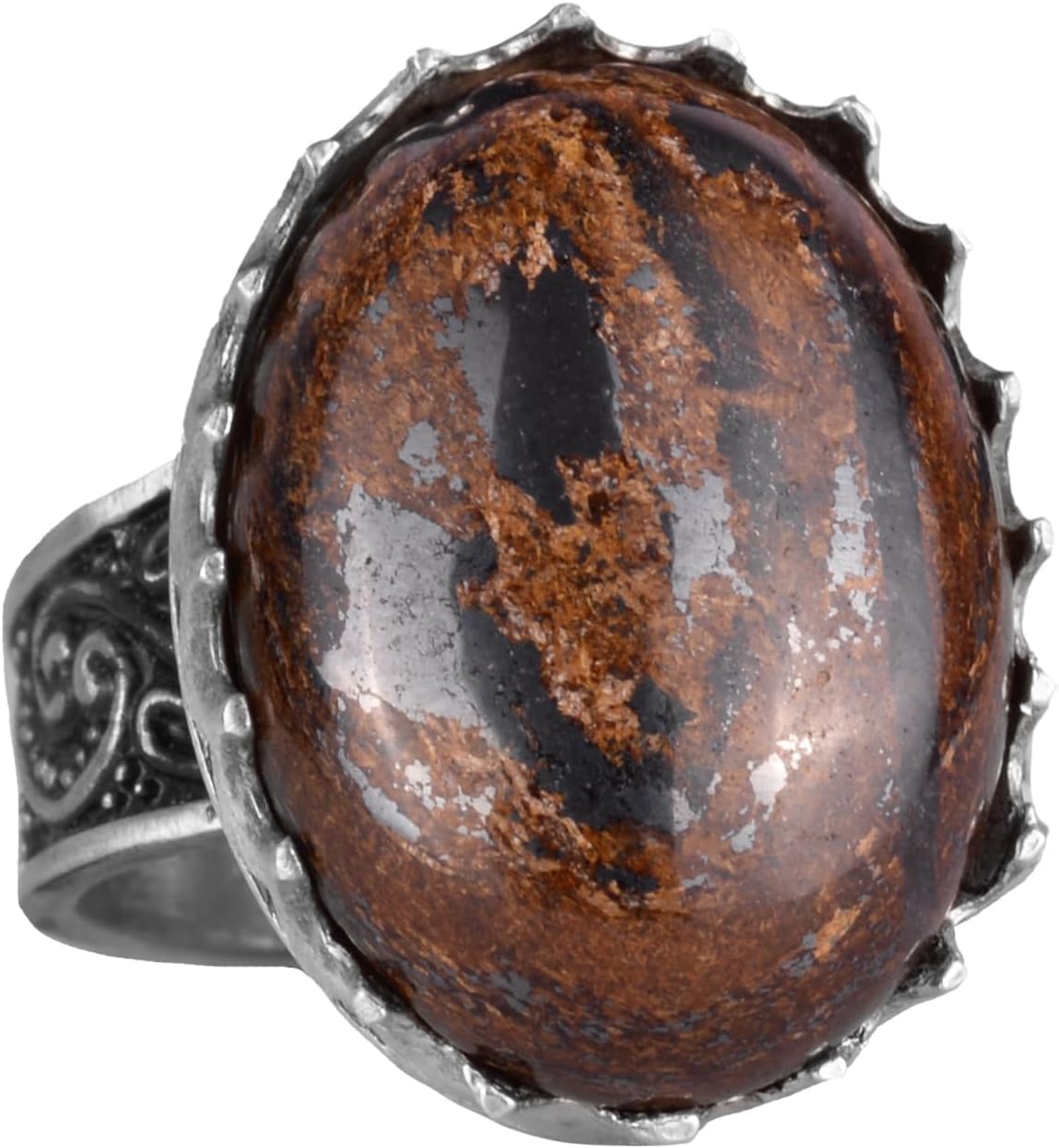 Gerçek Doğal Taş Yüzük - 925 Ayar Gümüş Büyük Yüzük - El Yapımı Yüzük (Bronzit)