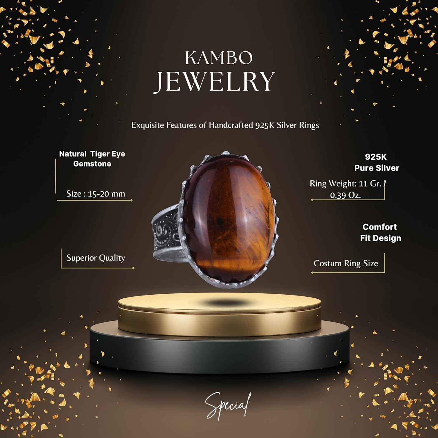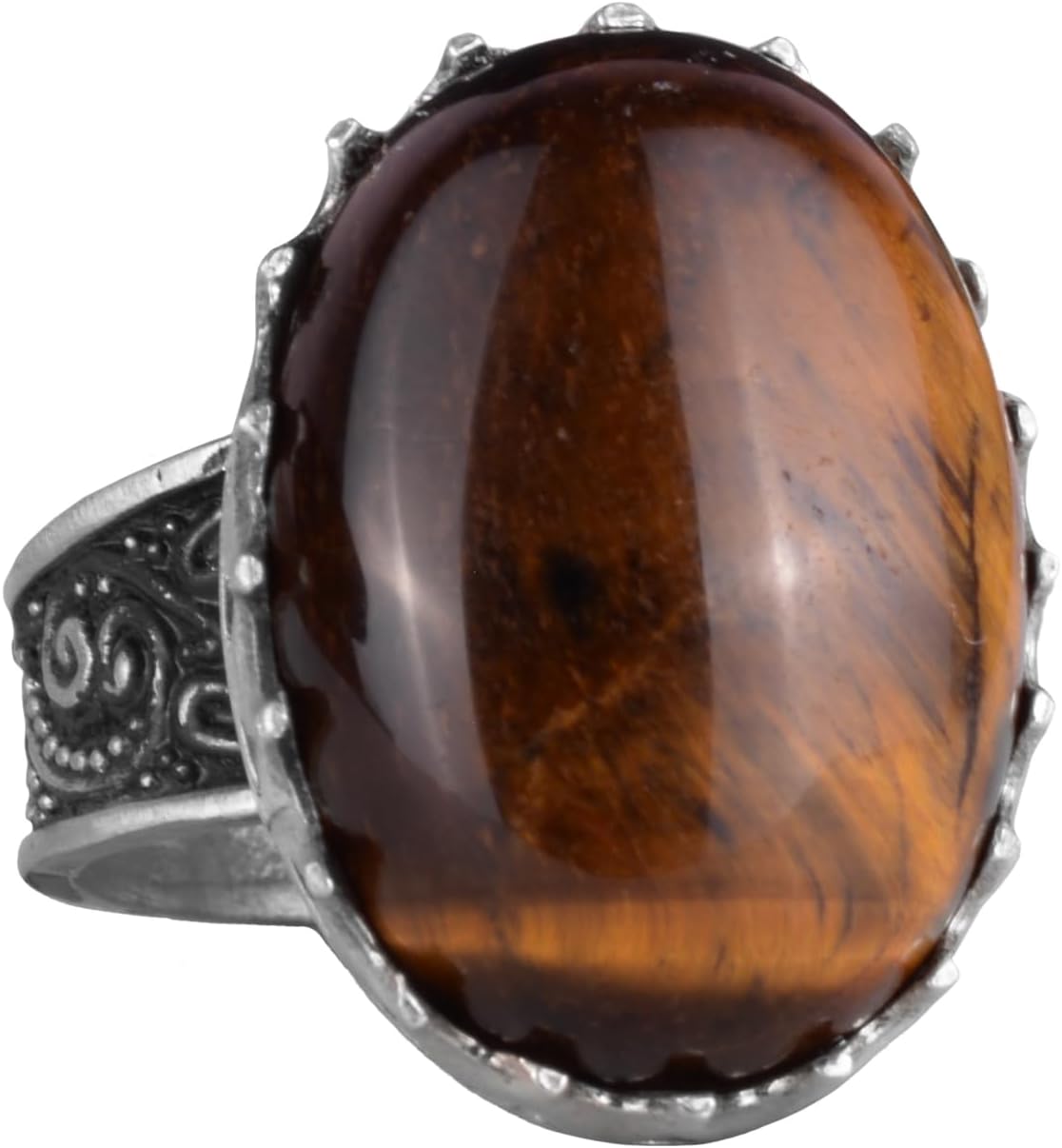 Gerçek Doğal Taş Yüzük - 925 Ayar Gümüş Büyük Yüzük - El Yapımı (Kaplan Gözü)