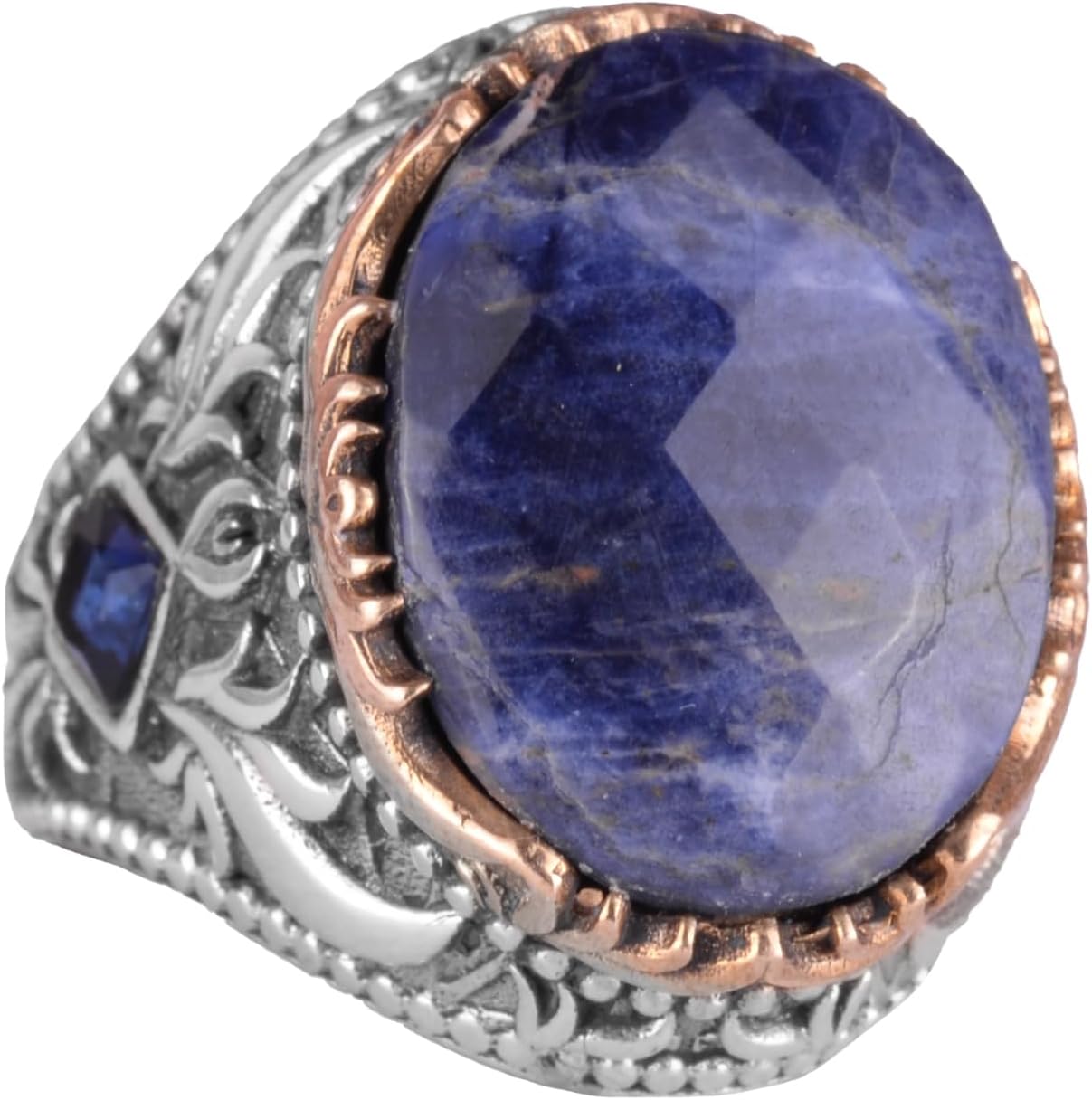 Gerçek Doğal Taş Yüzük - 925 Ayar Gümüş El Yapımı Yüzük (Sodalit)