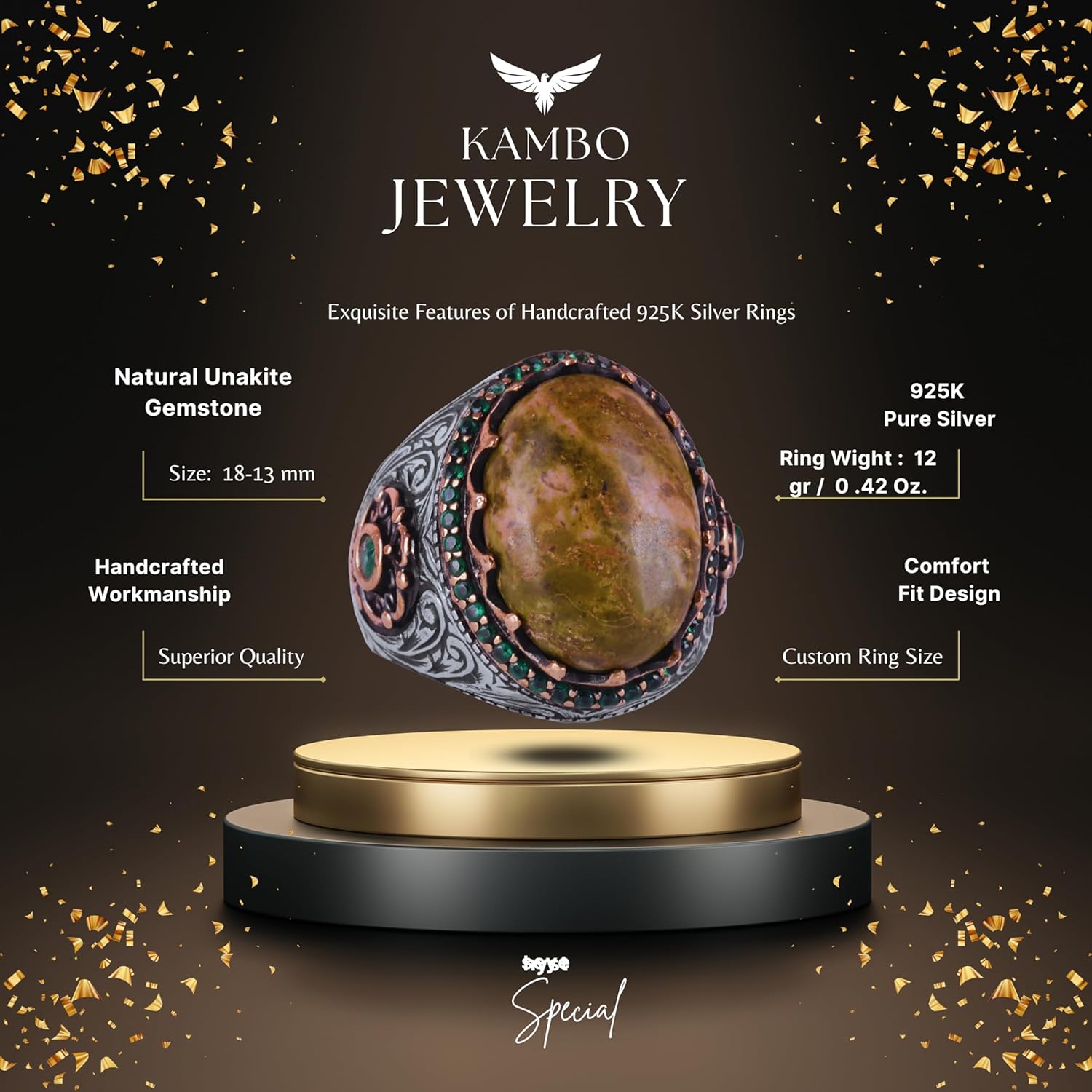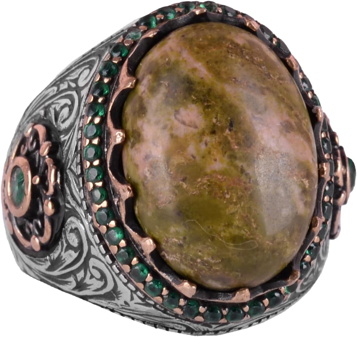 Gerçek Doğal Taş Yüzük - 925 Ayar Gümüş El Yapımı Yüzük (Unakit)