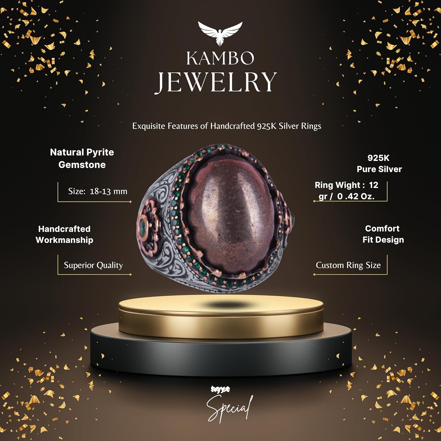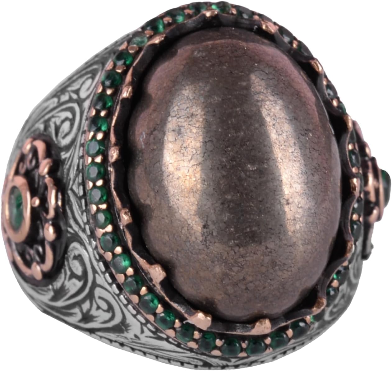 Gerçek Doğal Taş Yüzük - 925 Ayar Gümüş El Yapımı Yüzük (Pirit)