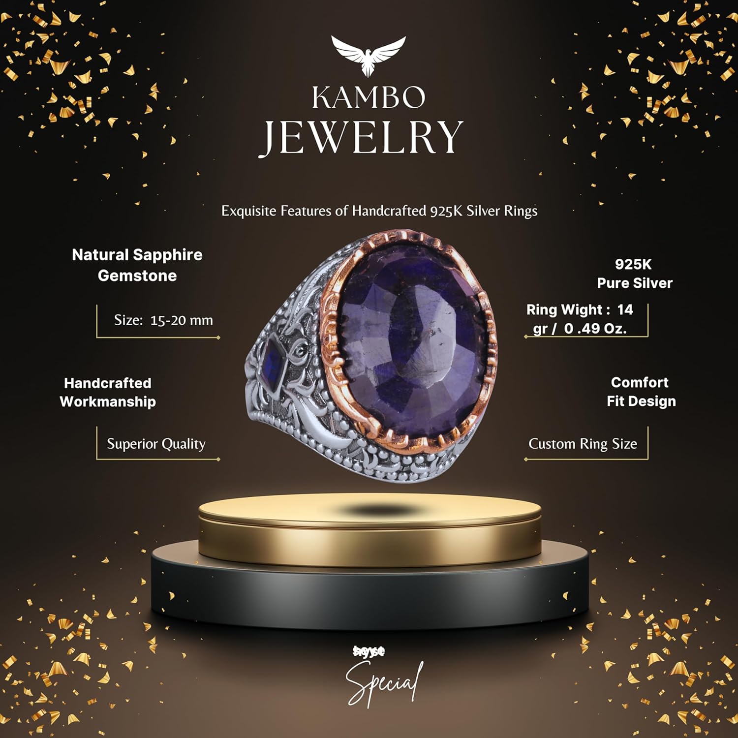 Gerçek Doğal Taş Yüzük - 925 Ayar Gümüş El Yapımı Yüzük (Safir)