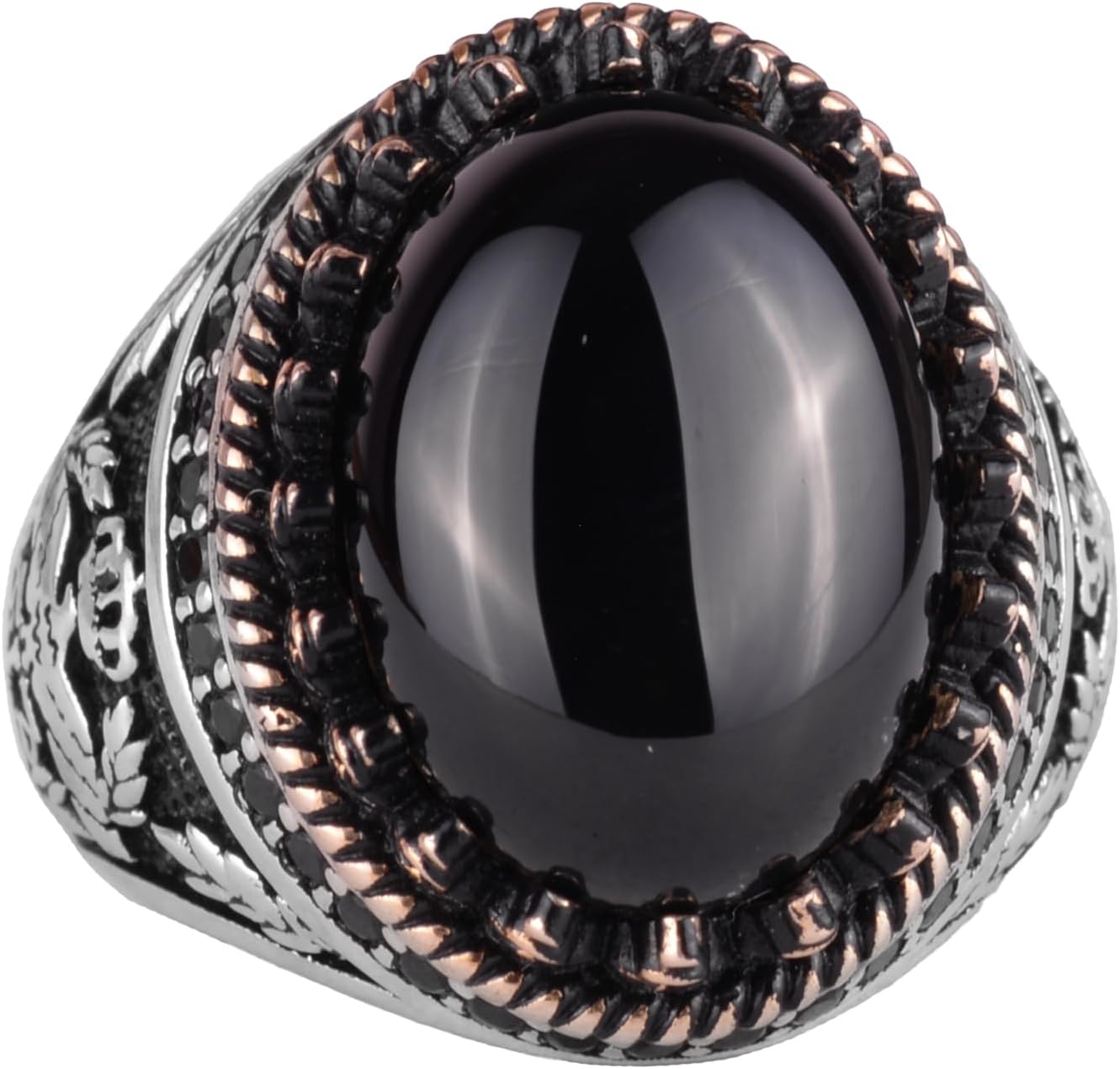 Gerçek Doğal Taş Yüzük - El Yapımı Kartal Yüzüğü - 925 Ayar Gümüş Yüzük (Oniks)
