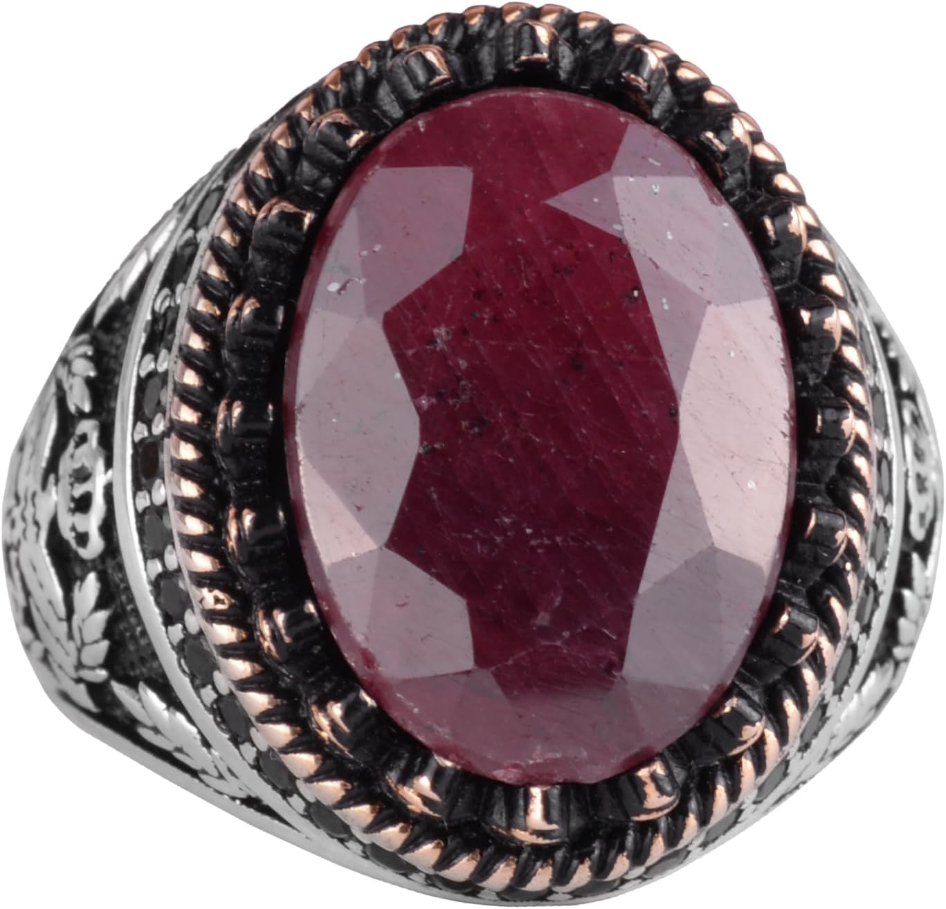 Gerçek Doğal Taş Yüzük - El Yapımı Kartal Yüzüğü - 925 Ayar Gümüş Yüzük (Yakut)