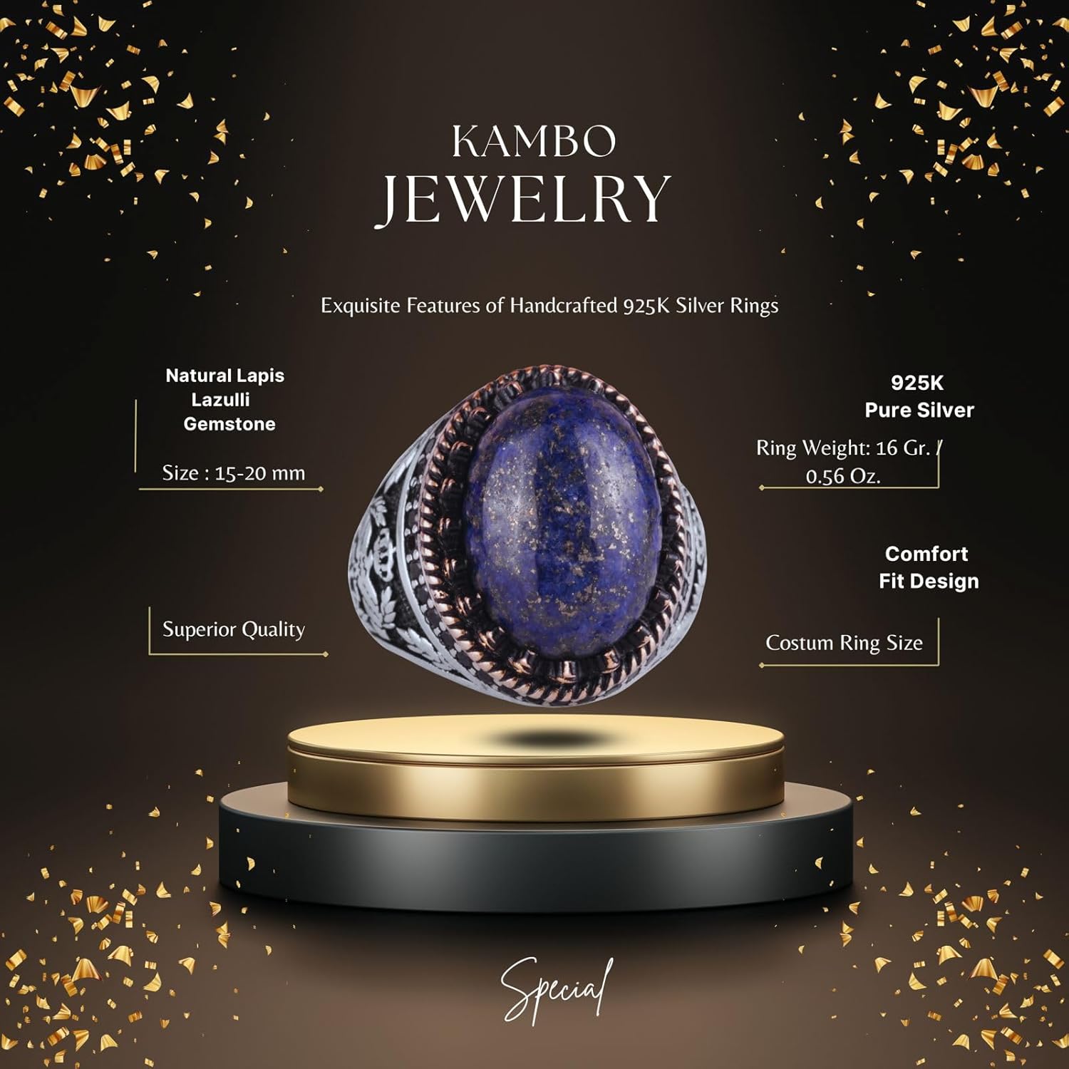 Gerçek Doğal Taş Yüzük - El Yapımı Kartal Yüzüğü - 925 Ayar Gümüş Yüzük (Lapis Lazuli)