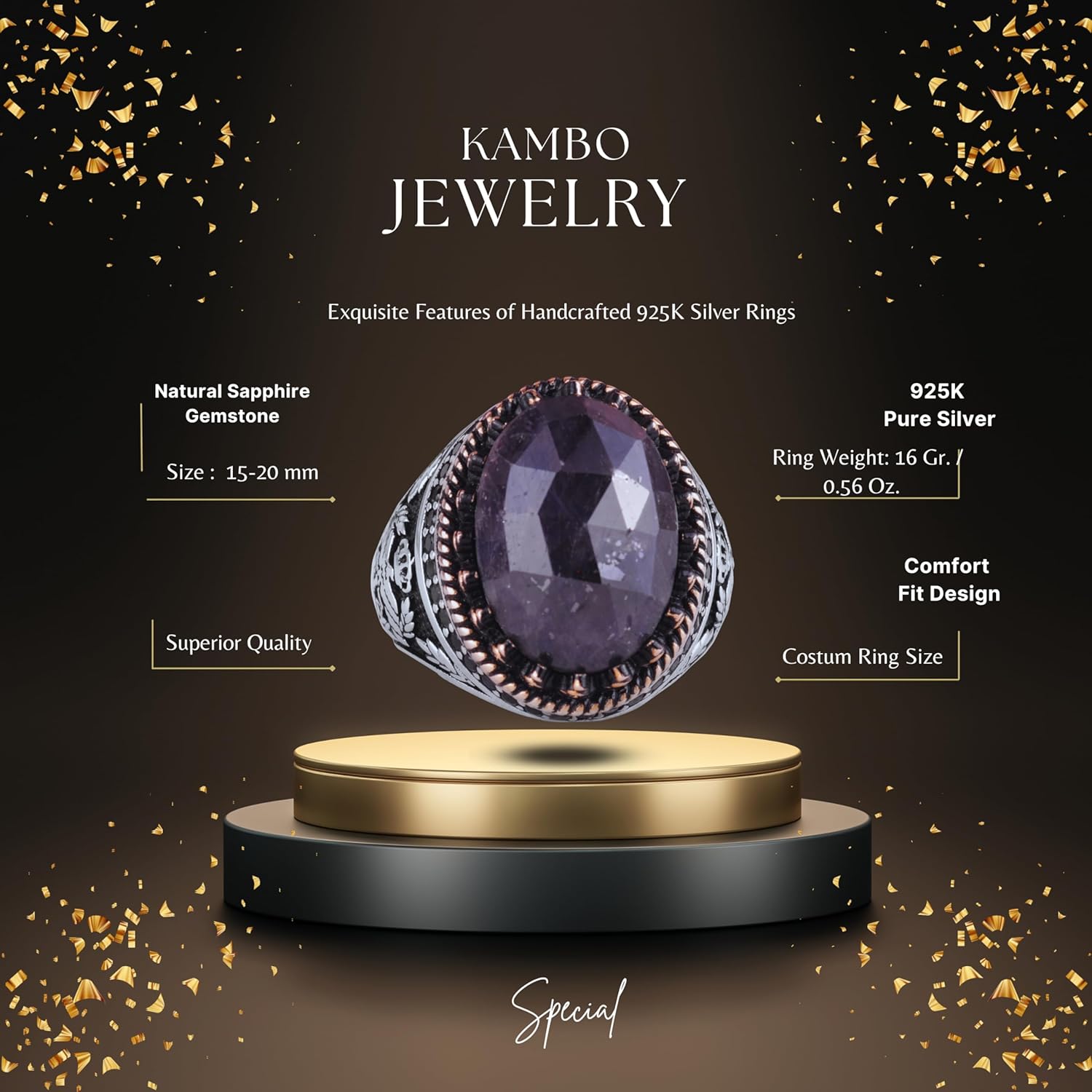 Gerçek Doğal Taş Yüzük - El Yapımı Kartal Yüzüğü - 925 Ayar Gümüş Yüzük (Mavi Safir)