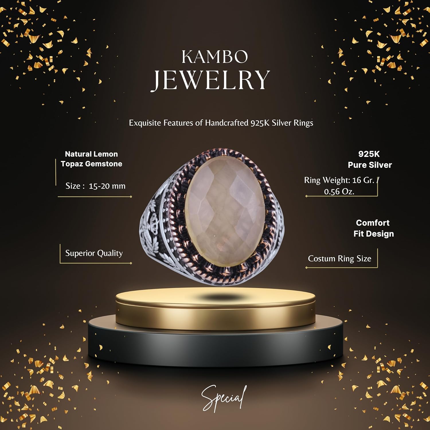 Gerçek Doğal Taş Yüzük - El Yapımı Kartal Yüzüğü - 925 Ayar Gümüş Yüzük (Limon Topaz)