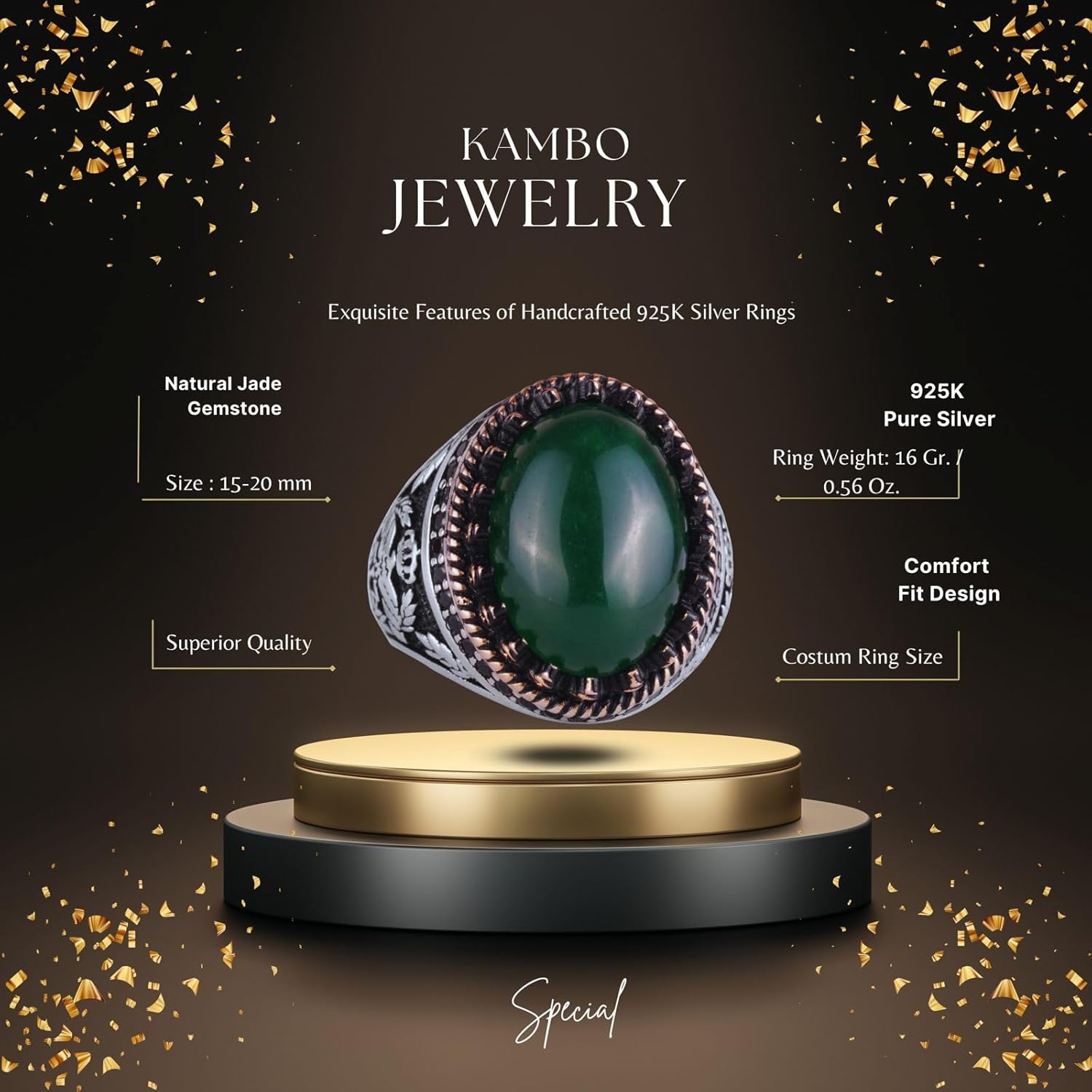 Gerçek Doğal Taş Yüzük - El Yapımı Kartal Yüzüğü - 925 Ayar Gümüş Yüzük (Jade)
