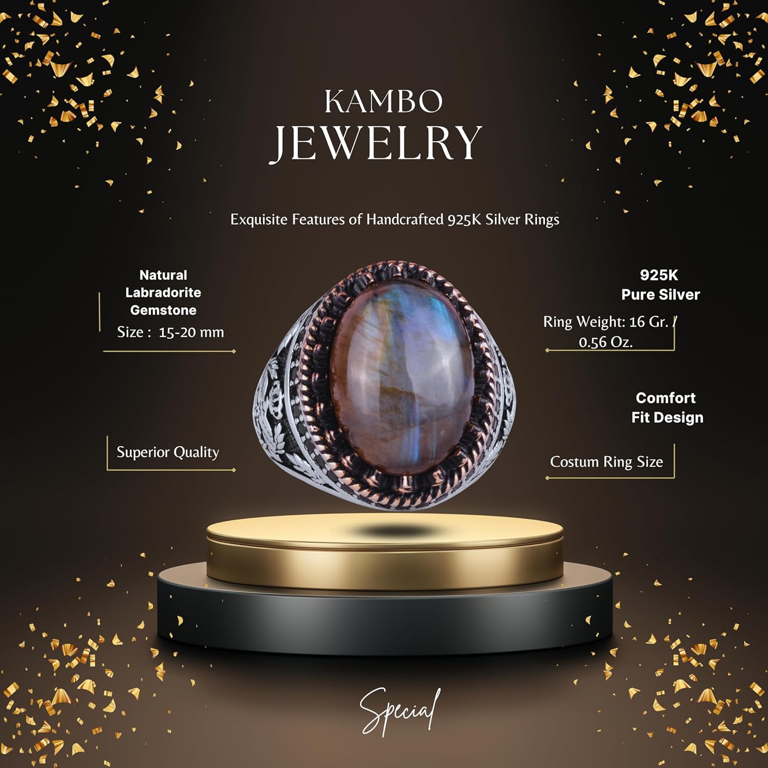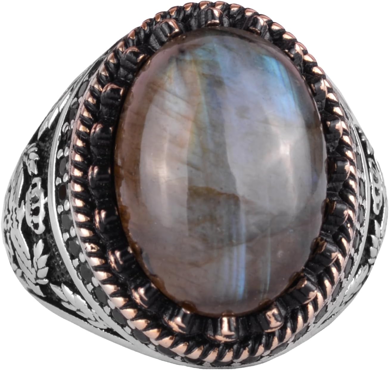 Gerçek Doğal Taş Yüzük - El Yapımı Kartal Yüzüğü - 925 Ayar Gümüş Yüzük (Labradorit)