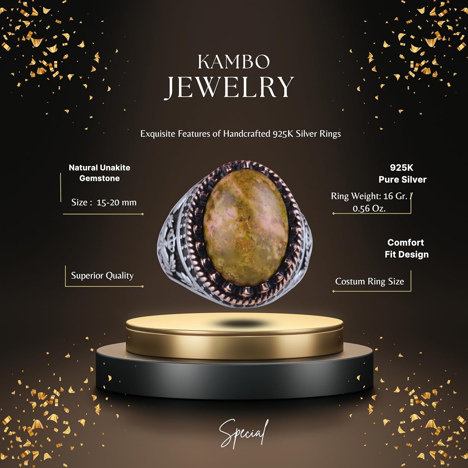 Gerçek Doğal Taş Yüzük - El Yapımı Kartal Yüzüğü - 925 Ayar Gümüş Yüzük (Unakite)