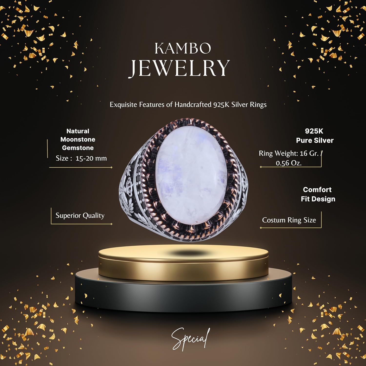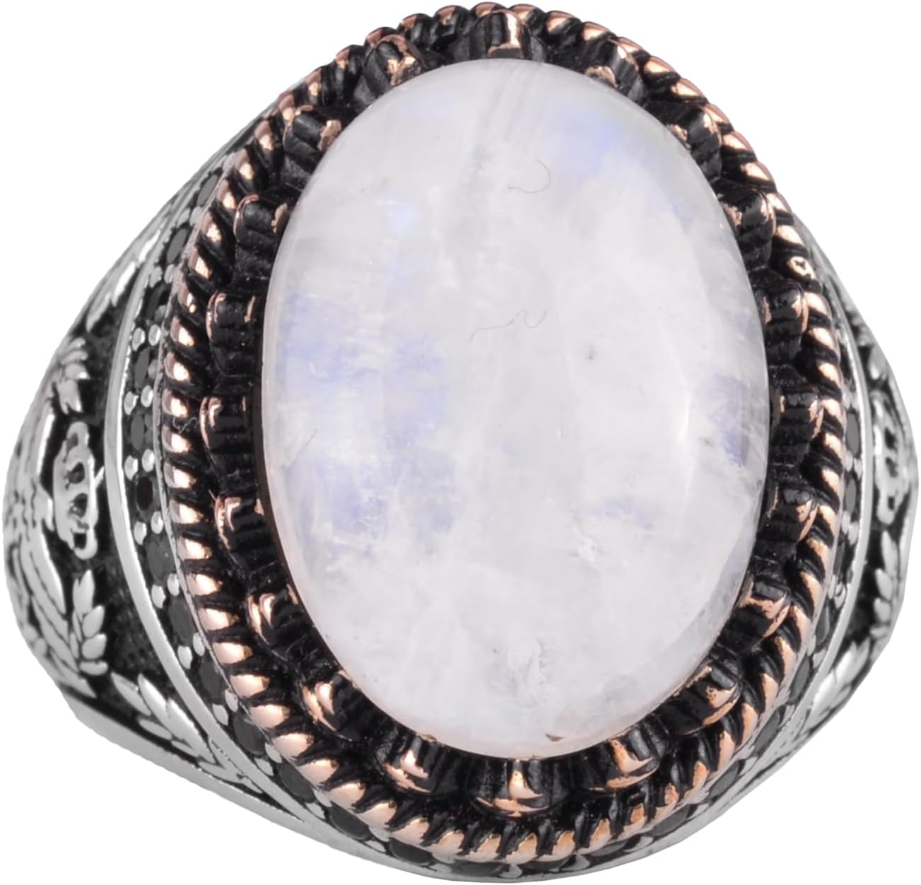Gerçek Doğal Taş Yüzük - El Yapımı Şahin Yüzük - 925 Ayar Gümüş Yüzük (Ay Taşı)