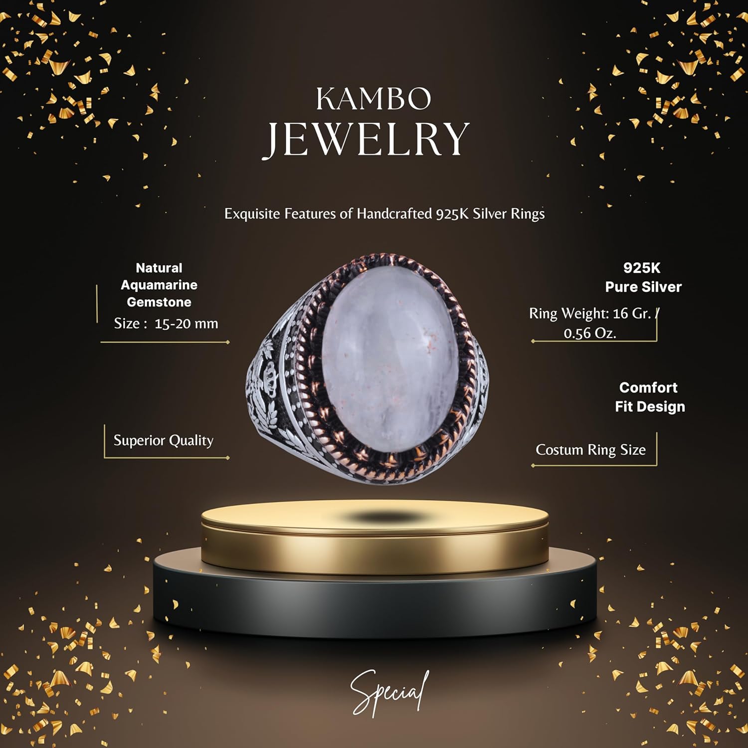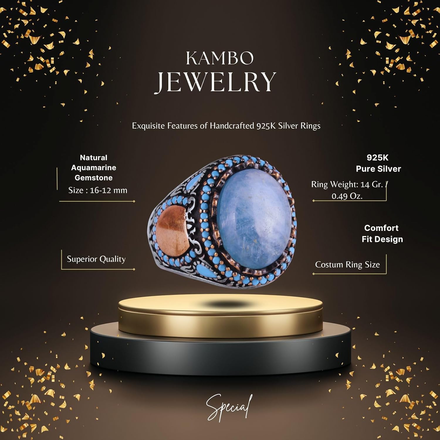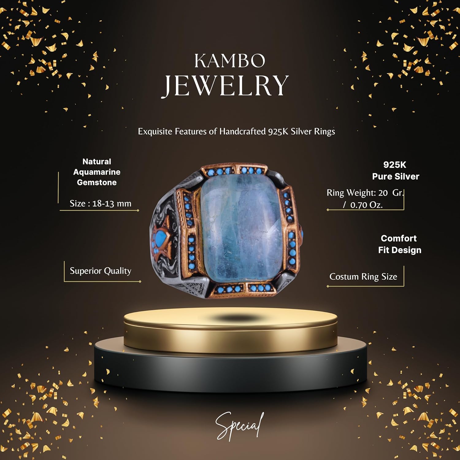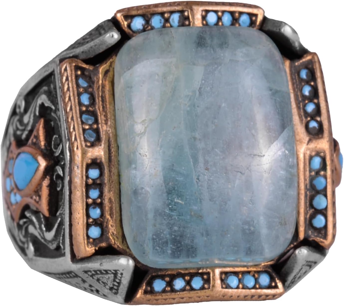 Gerçek Doğal Taş Yüzük - El Yapımı Şahin Yüzük - 925 Ayar Gümüş Yüzük (Aquamarine)