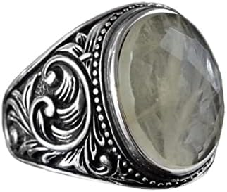 Gerçek Doğal Taş Yüzük, 925 Ayar Gümüş Erkek Yüzüğü, Erkekler İçin Doğum Taşı Yüzüğü
