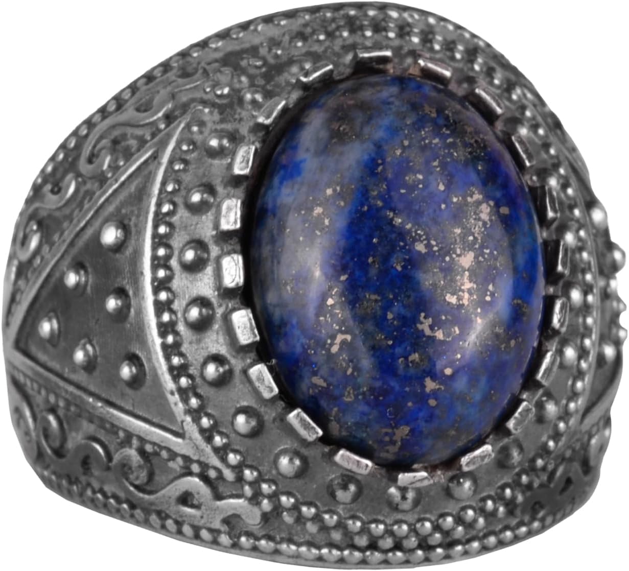 Gerçek Doğal Taş Yüzük, 925 Ayar Katı Gümüş Erkek Yüzüğü (Lapis Lazuli)