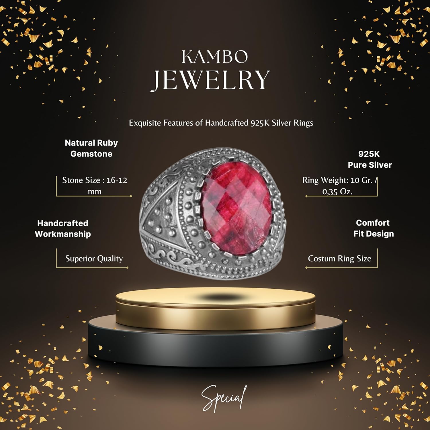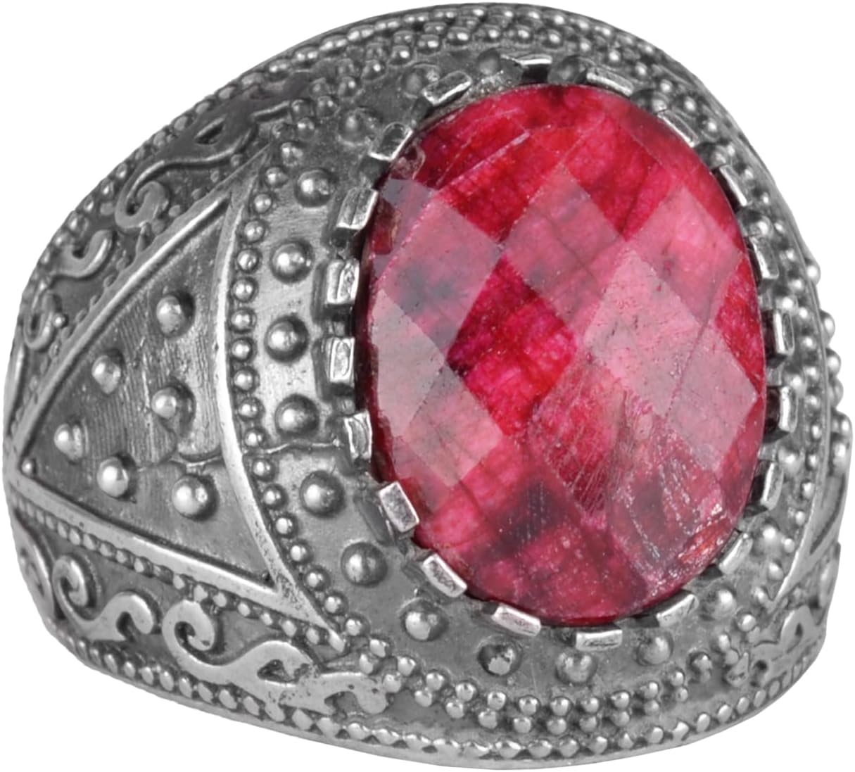 Gerçek Doğal Taş Yüzük, 925 Ayar Katı Gümüş Erkek Yüzüğü (Yakut)