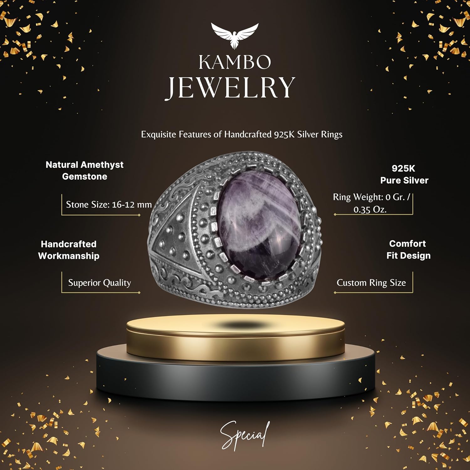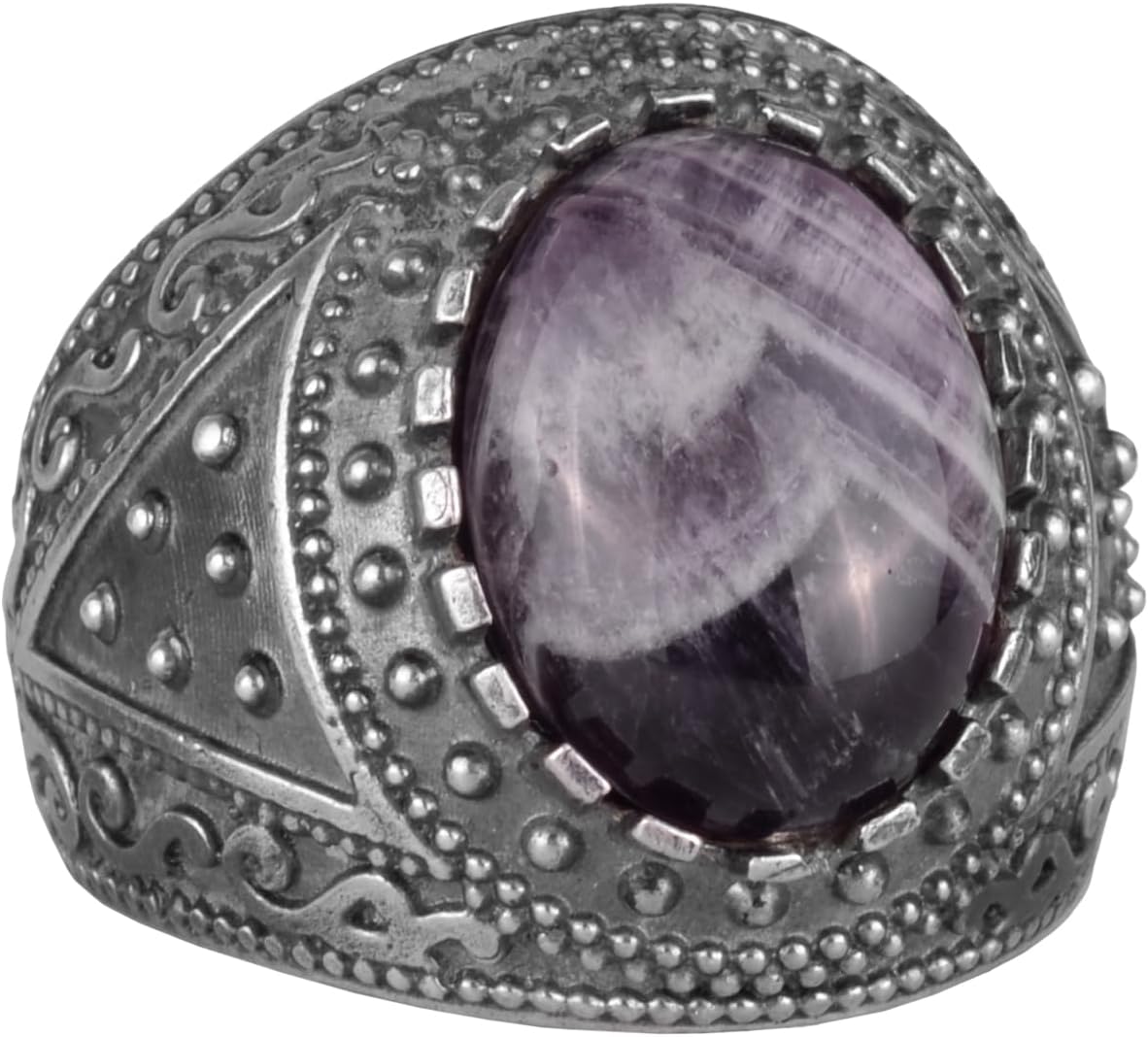 Gerçek Doğal Taş Yüzük, 925 Ayar Katı Gümüş Erkek Yüzüğü (Ametist)