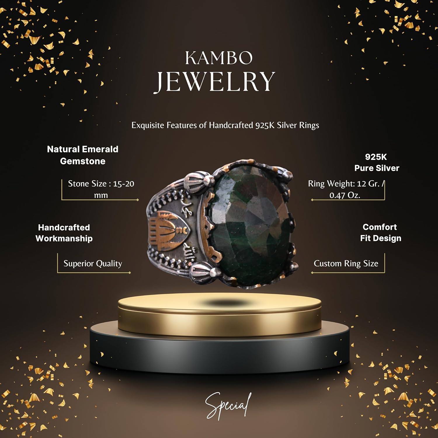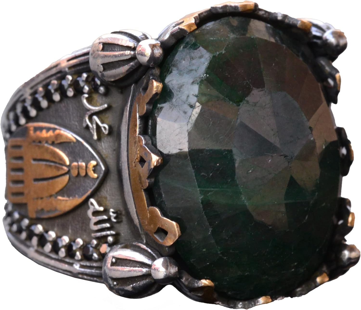 Gerçek Doğal Taş Yüzük, 925 Ayar Gümüş Yüzük, Camii Yüzüğü (Zümrüt)