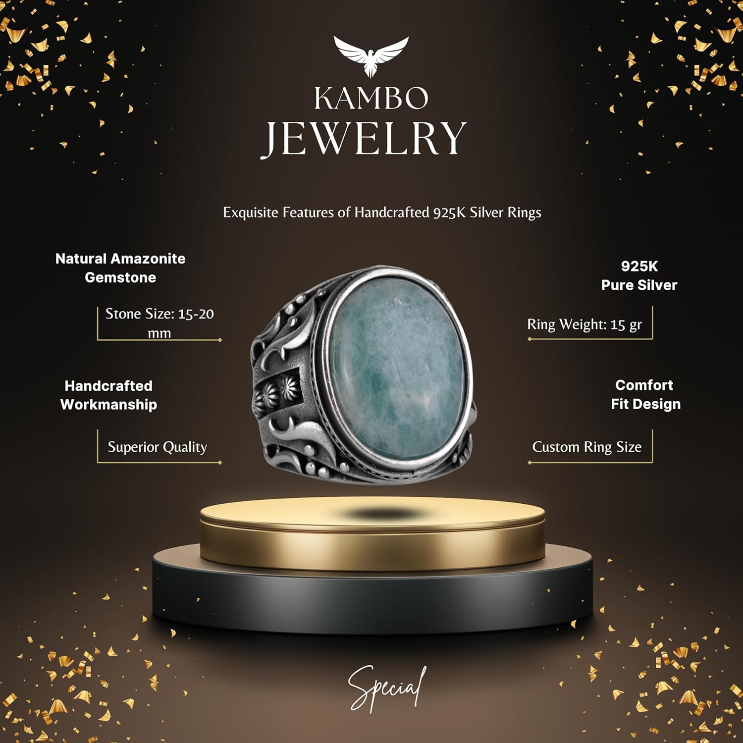 Gerçek Doğal Taş Yüzük, 925 Ayar Gümüş Yüzük, Tasarım Gümüş Erkek Yüzüğü (Amazonit)