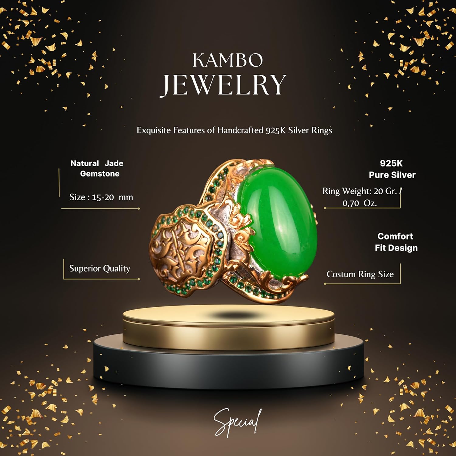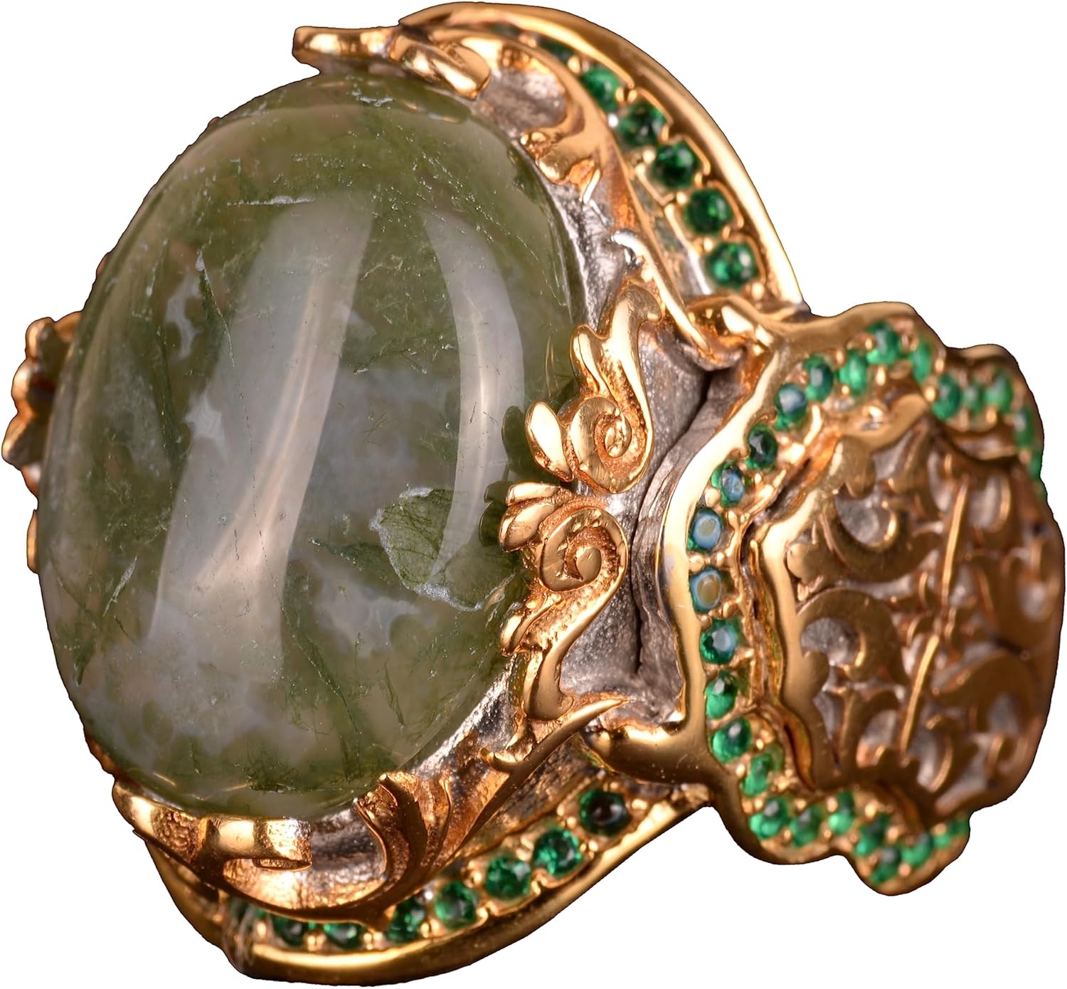 Gerçek Doğal Taş Yüzük, Gümüş Kral - Altın Kaplama (Jade)