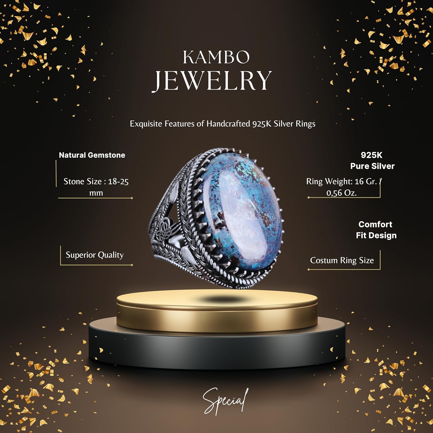 Gerçek Doğal Taş Yüzük, Erkekler İçin Şık Yüzük, El Yapımı Yüzük, Sultan Yüzüğü, 925 Ayar Gümüş Yüzük