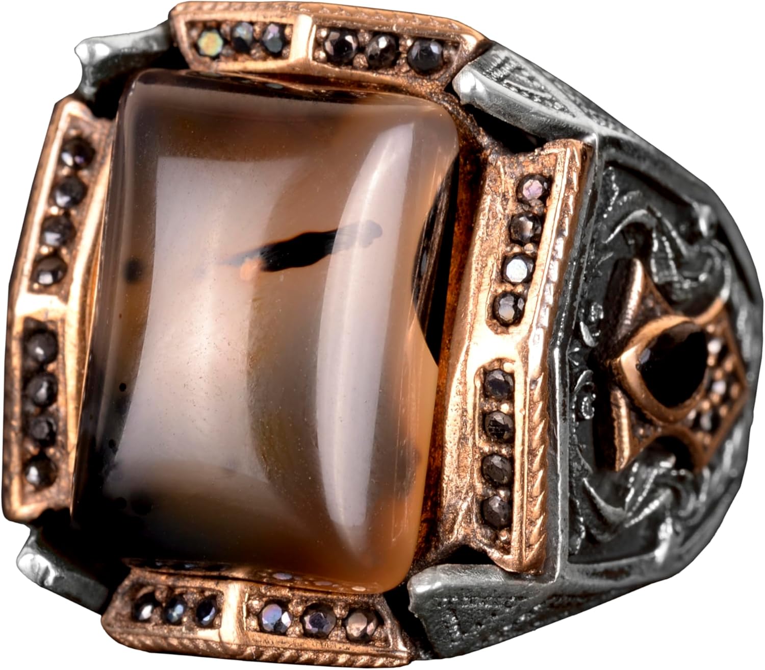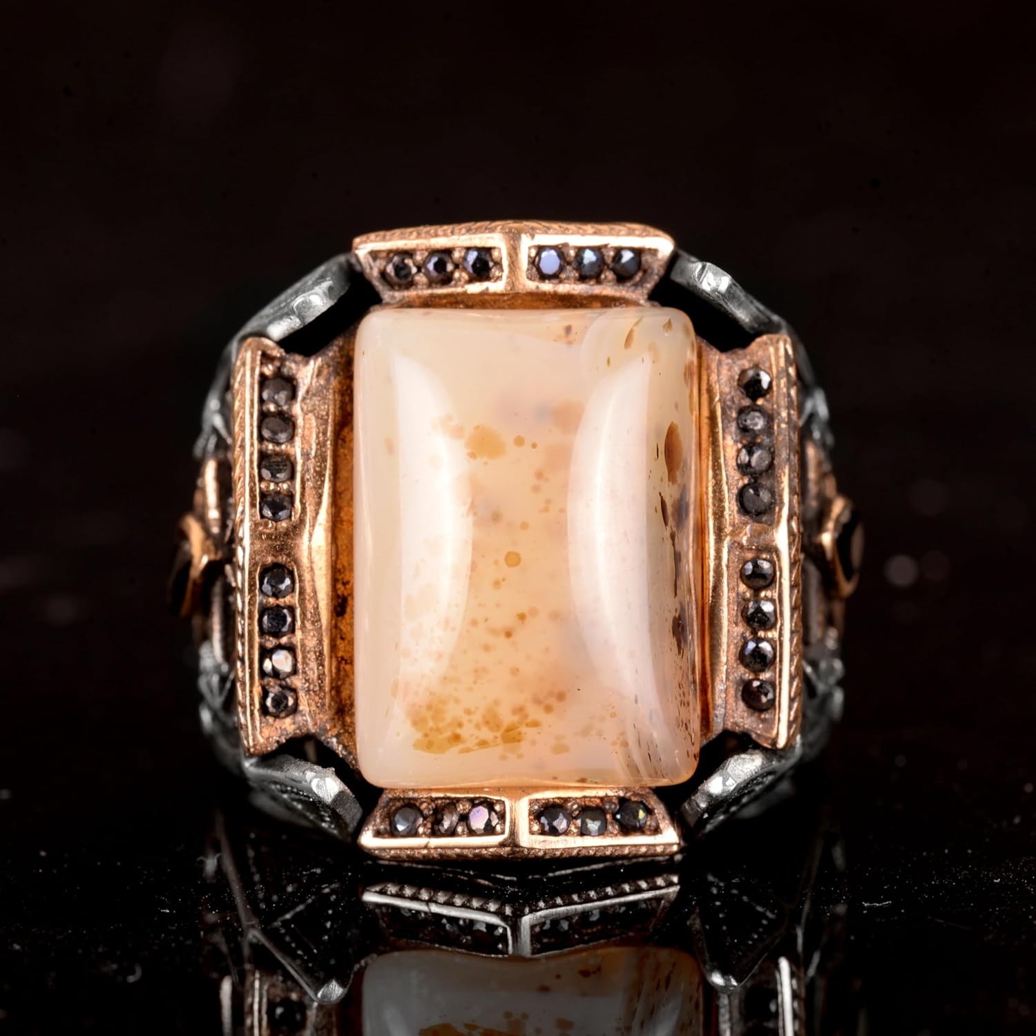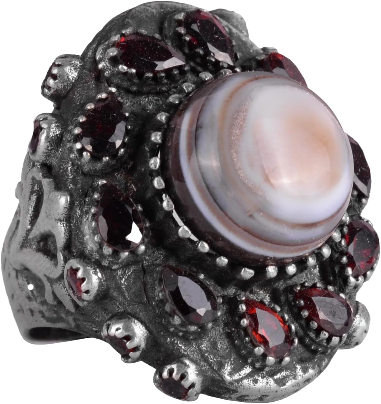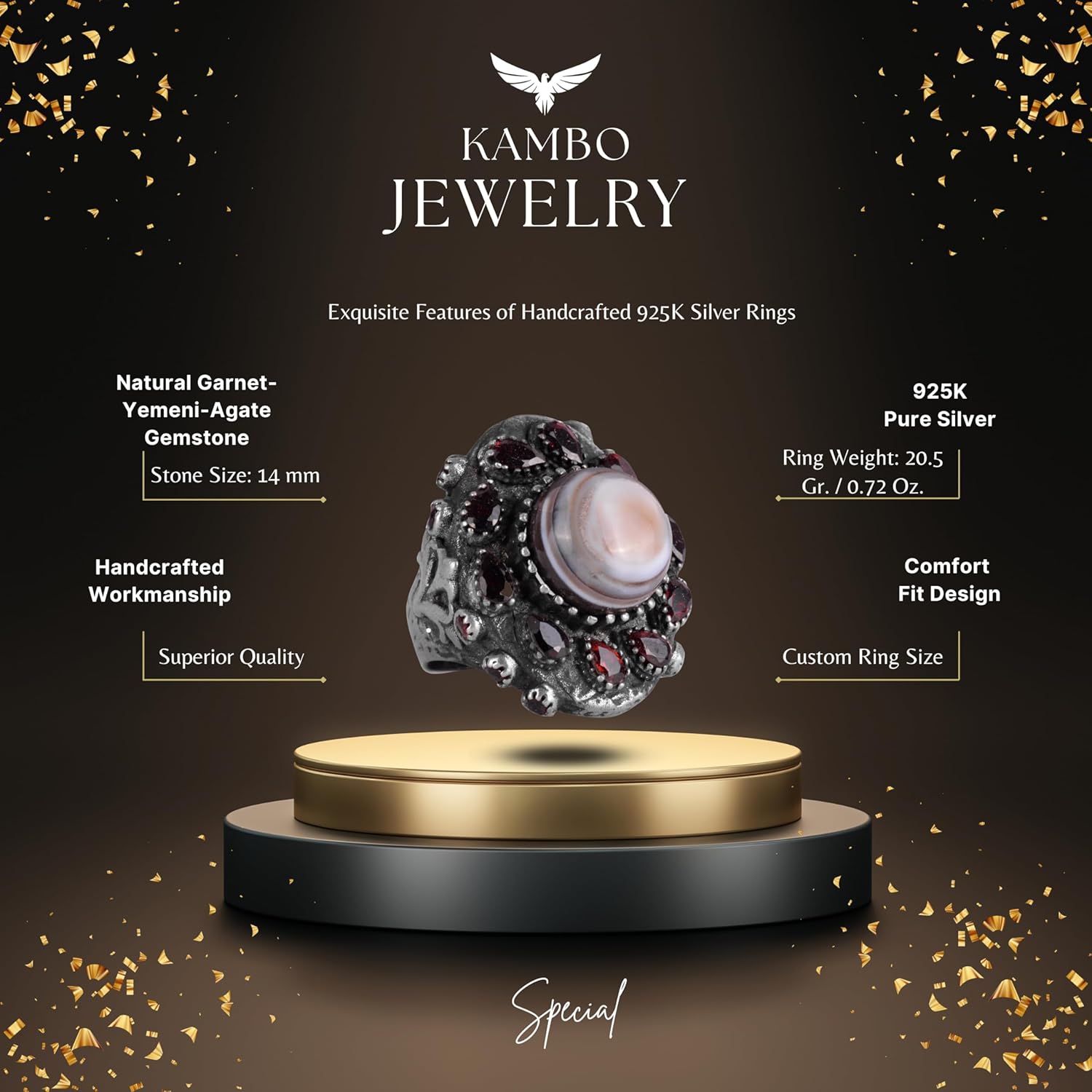 Gerçek Doğal Yemen Akik ve Granat Taşlı Yüzük - Sultan Yüzüğü - 925 Ayar Gümüş Yüzük