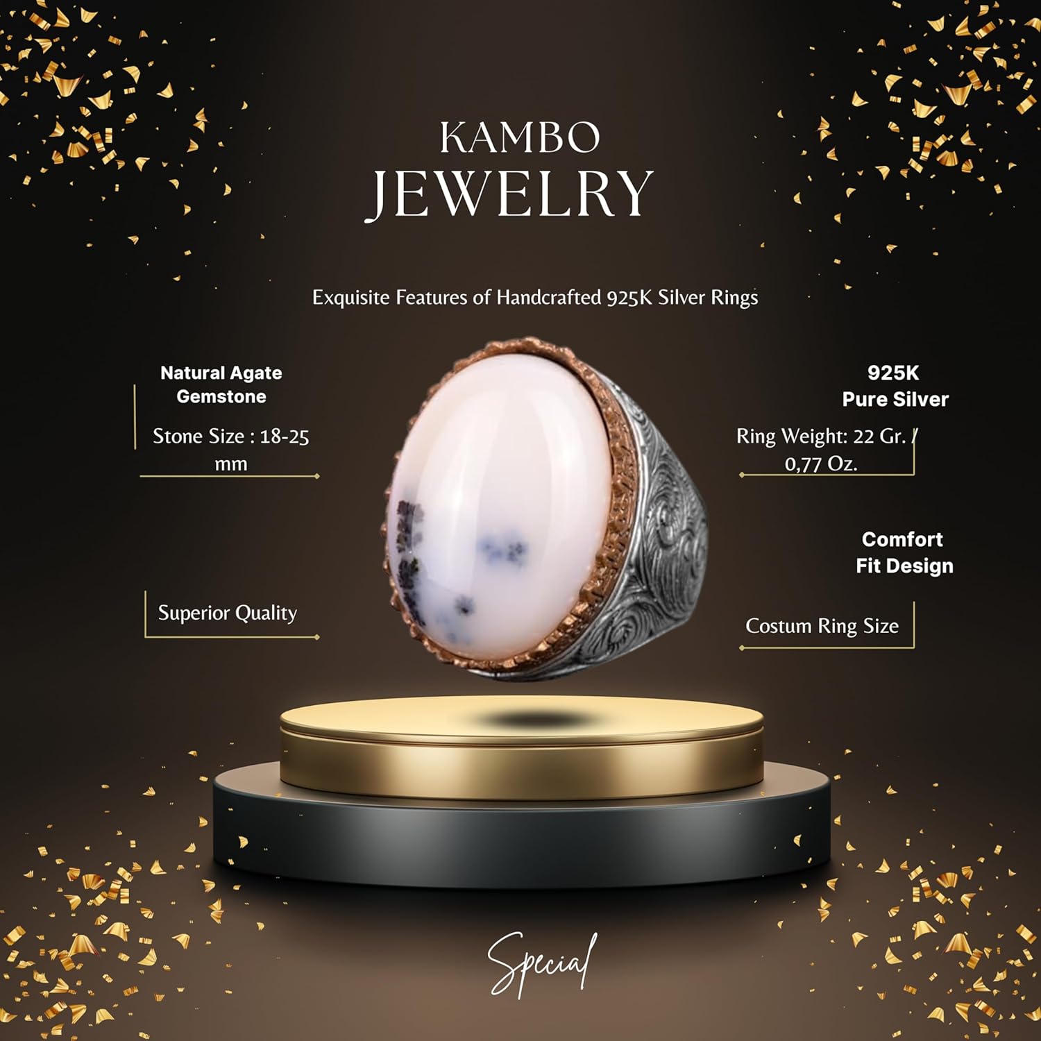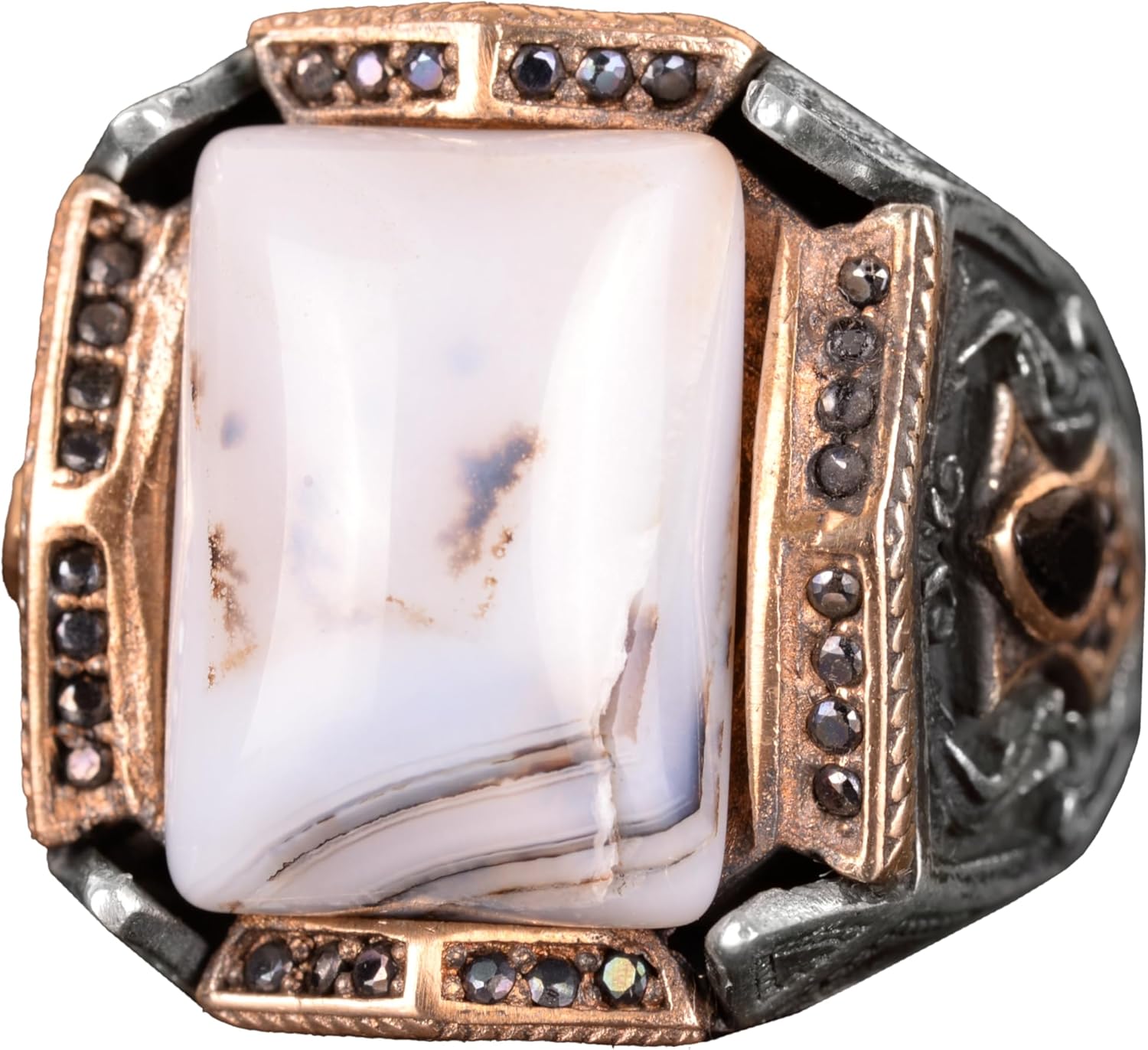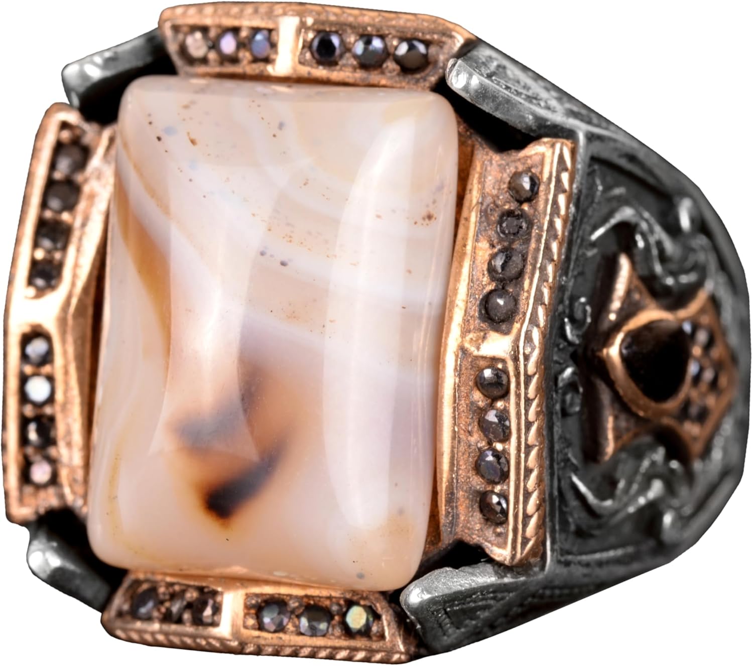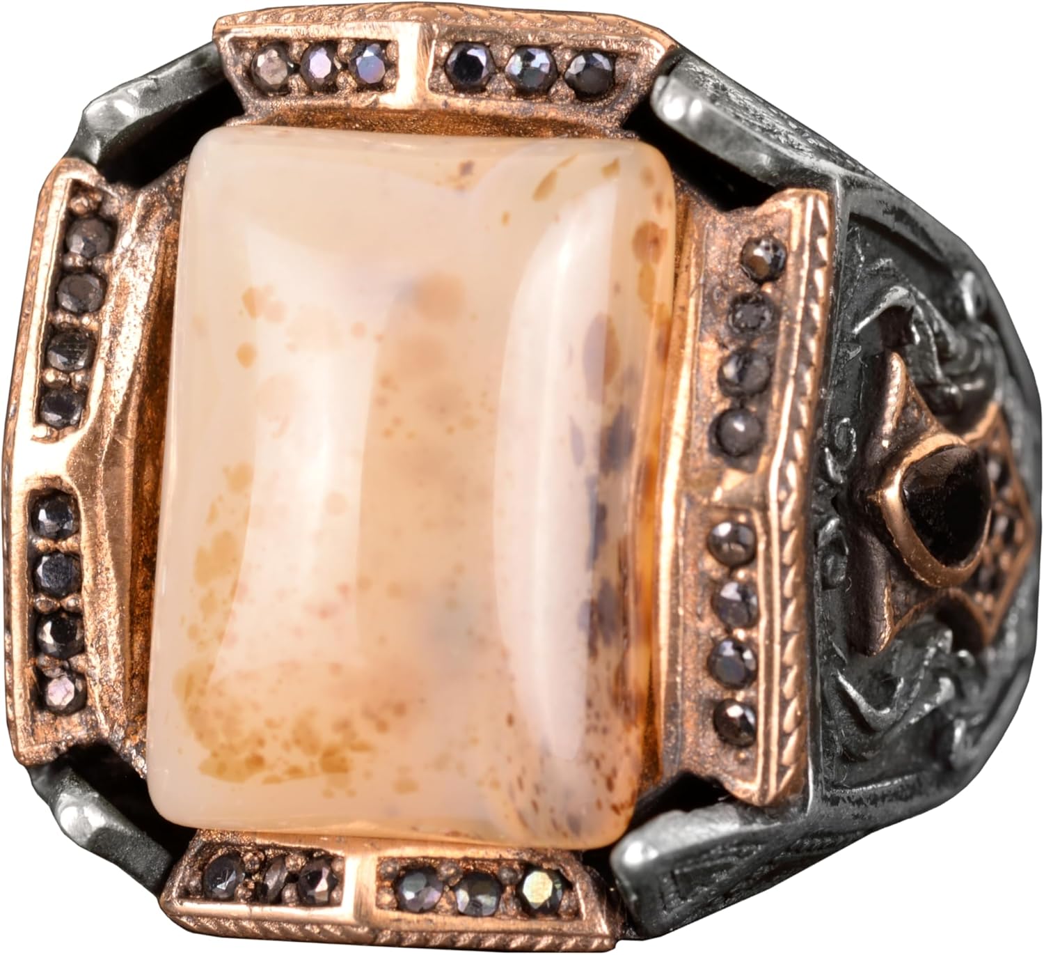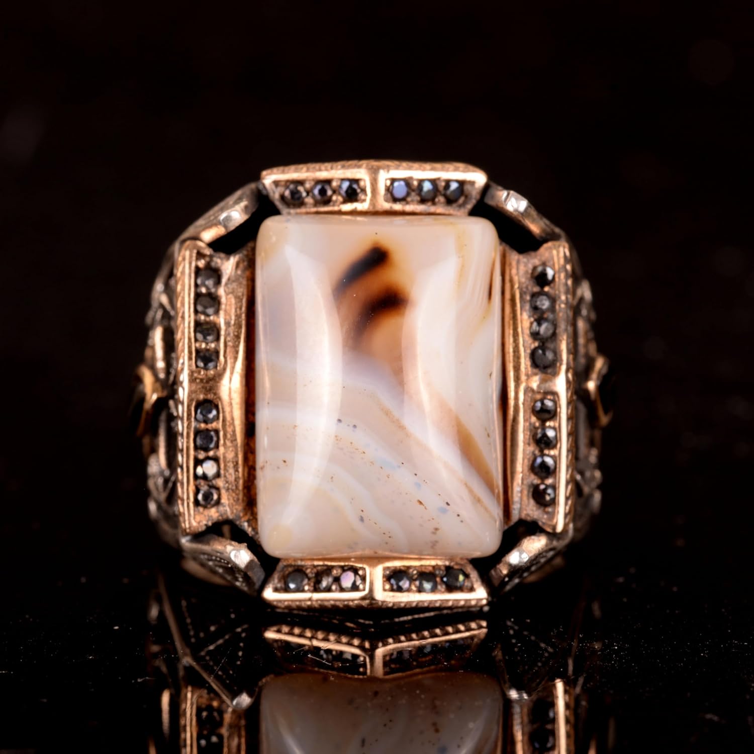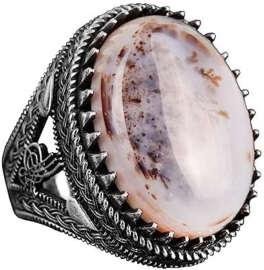 Gerçek Doğal Yemen Agat Taşı Yüzük, 27.90 Karat, Gümüş Yüzük, Osmanlı Mühür Yüzüğü, Erkek Yüzüğü