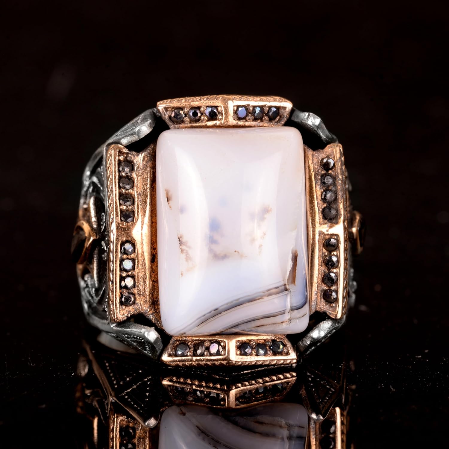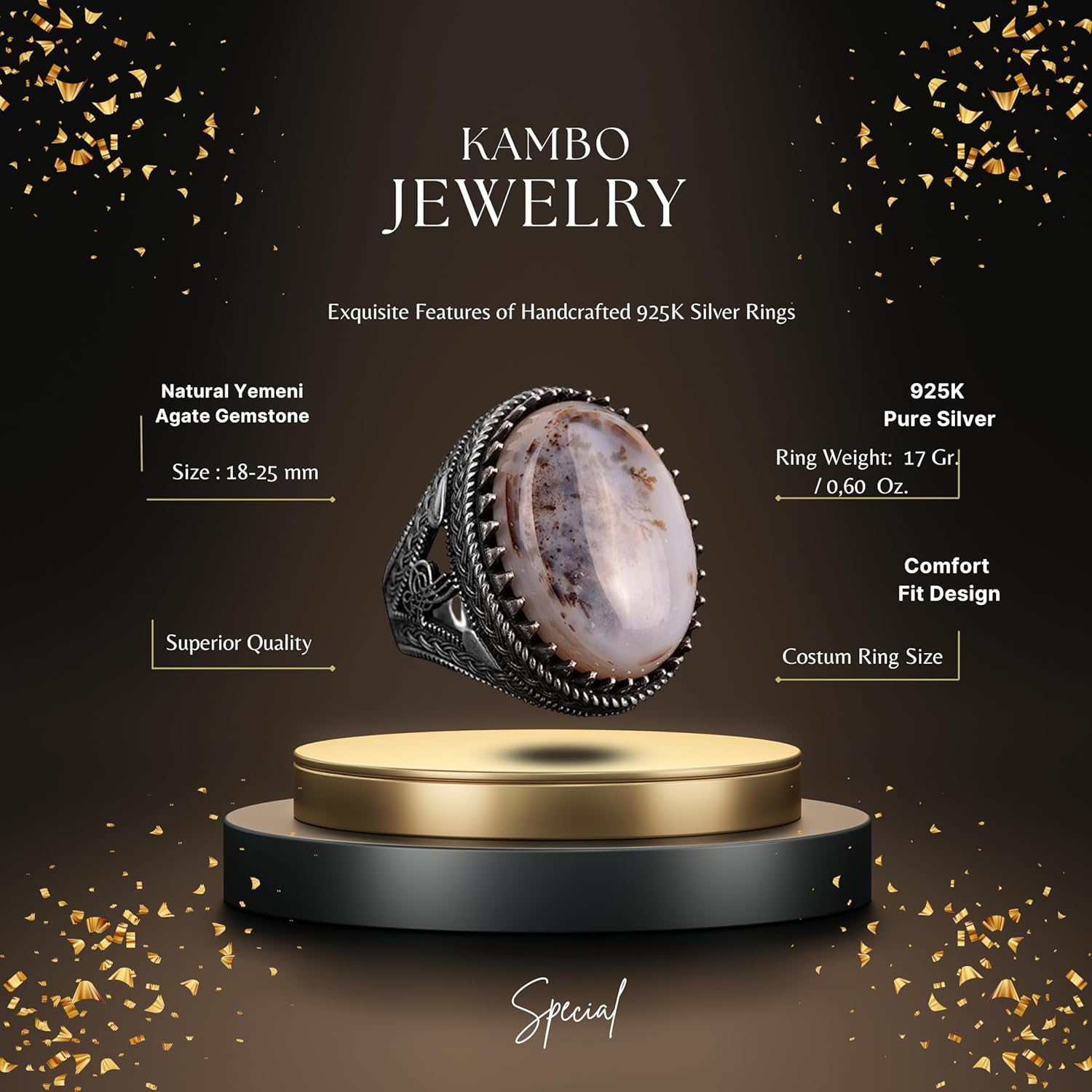 Gerçek Doğal Yemen Akik Taşı Yüzük - 925 Ayar Gümüş Yüzük Erkekler İçin (Stil-3)