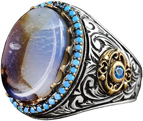 Gerçek Doğal Yemen Akik Taşı Yüzük, Erkekler İçin Gümüş Yüzük