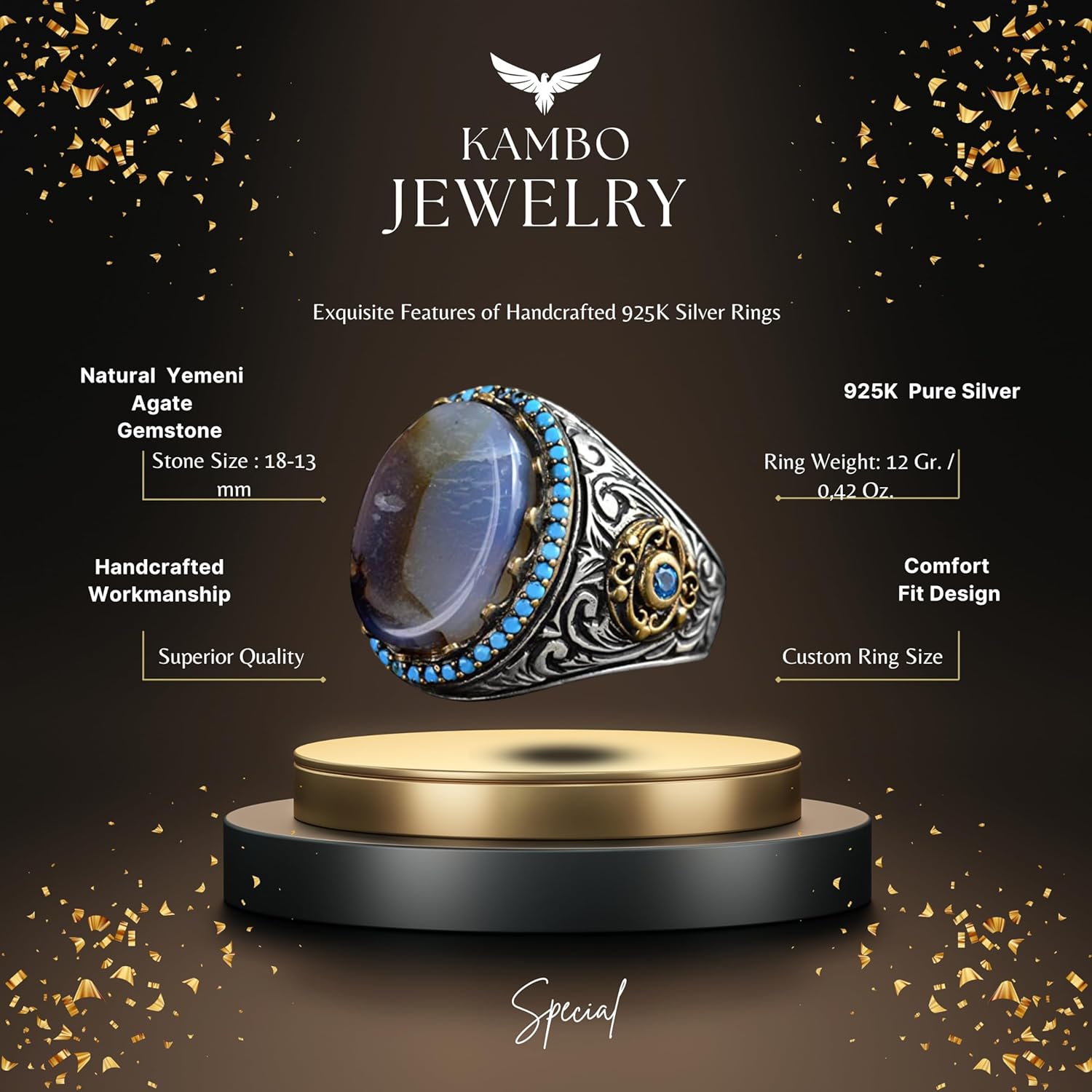Gerçek Doğal Yemen Akik Taşı Yüzük, Kral Yüzüğü, El Yapımı Yüzük, 925 Ayar Gümüş Yüzük Erkekler İçin