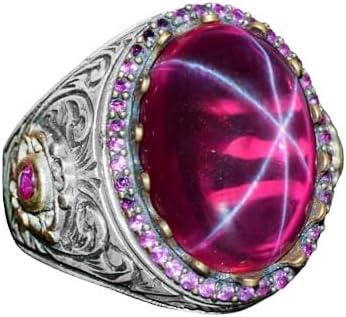 Gerçek Doğal Yıldız Yakutu Taşlı Yüzük, El Yapımı Yüzük, 925 Ayar Gümüş Yüzük Erkekler İçin