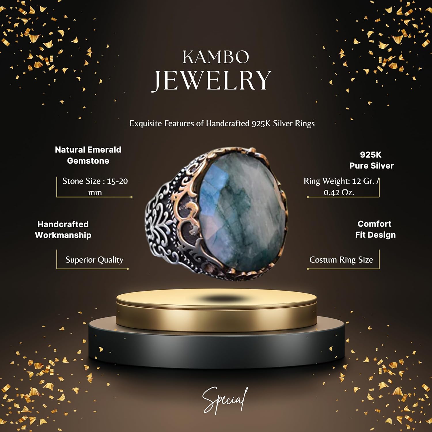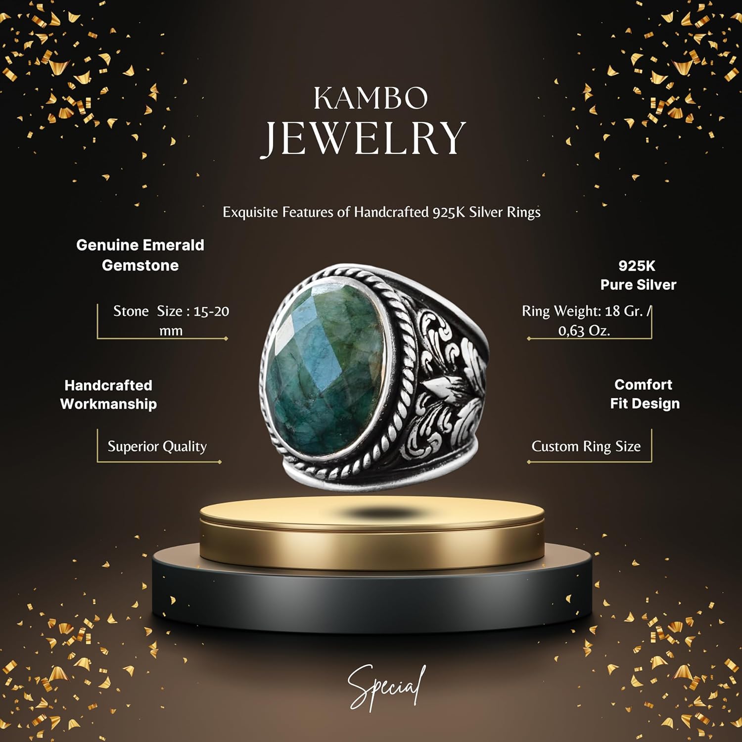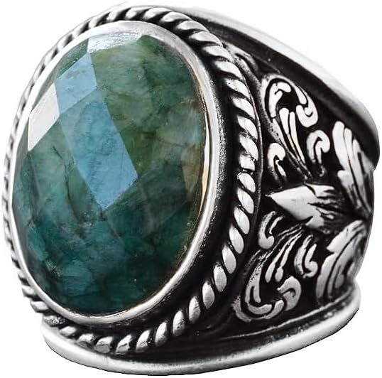 Gerçek Doğal Zümrüt Taş Yüzük, 925 Ayar Sert Gümüş Yüzük, Erkekler İçin El Yapımı Yüzük
