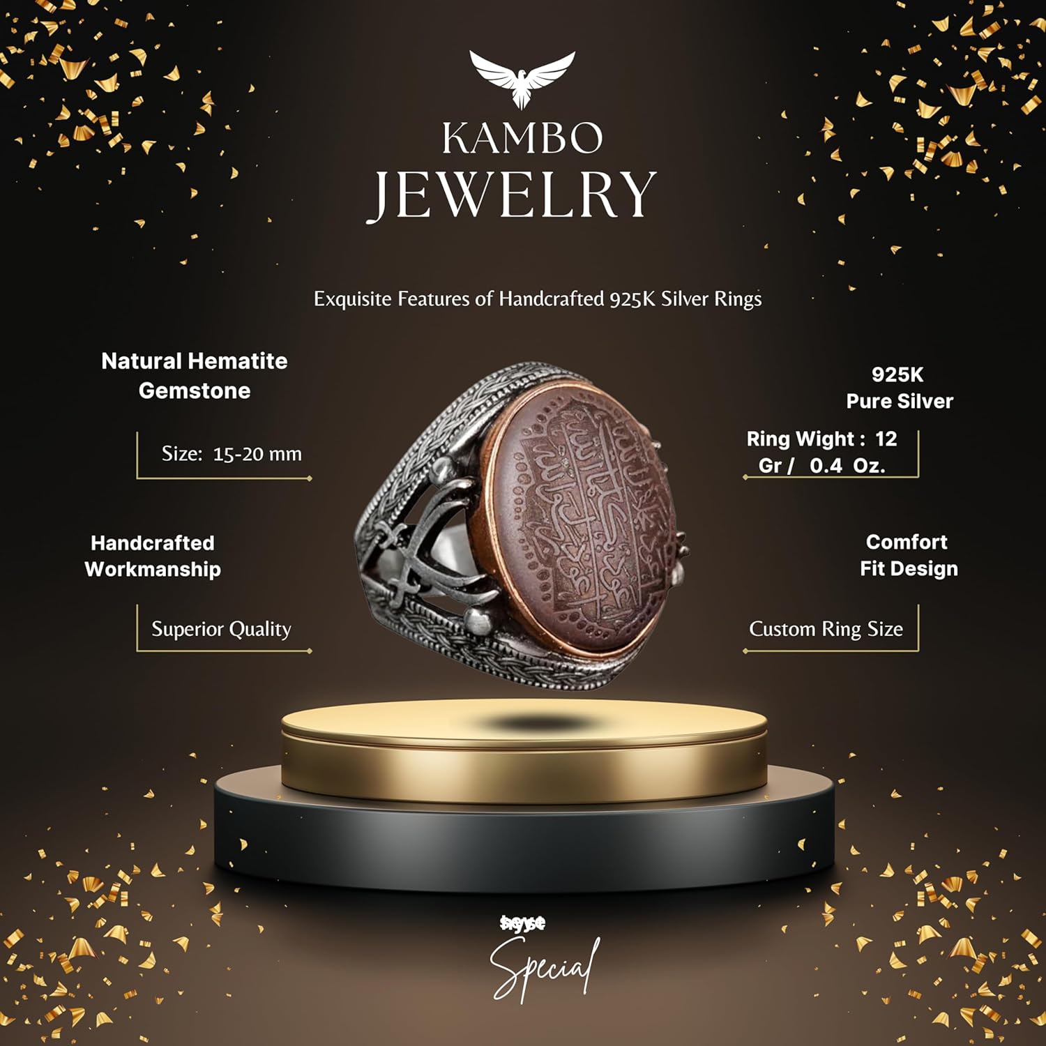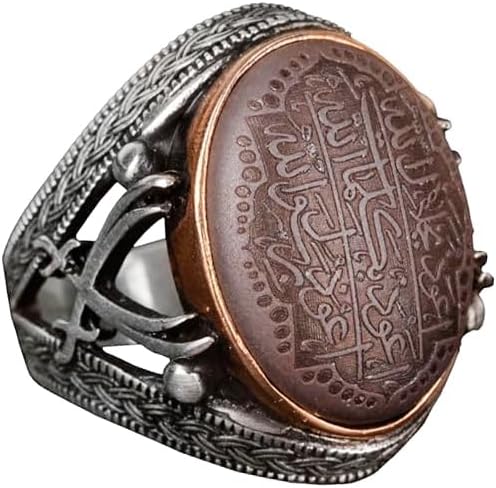 Gerçek Hematit Taş Yüzük, Kılıç Yüzüğü, İslami Gümüş Erkek Yüzüğü, 925 Ayar Gümüş Yüzük