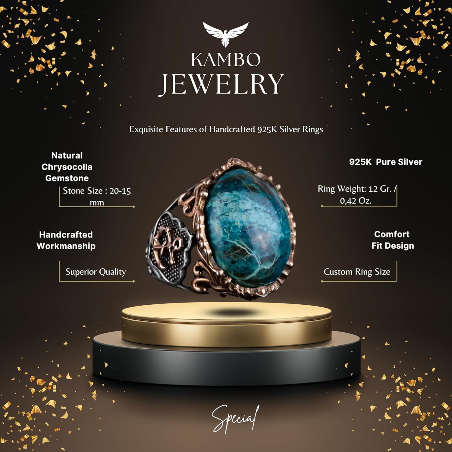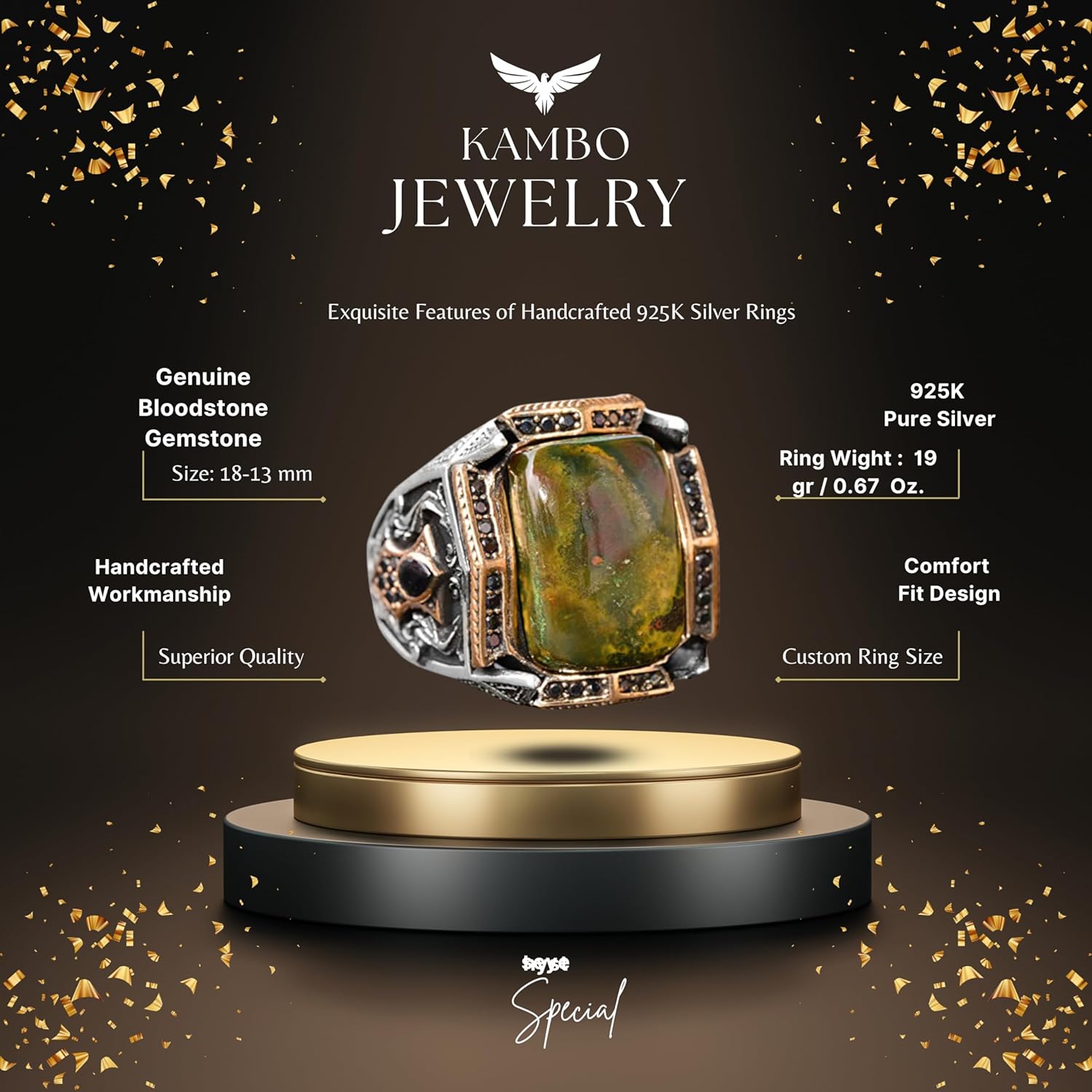 Gerçek Kan Taşı Taş Yüzük, Sterlin Gümüş Yüzük, Özel Tasarım Yüzük