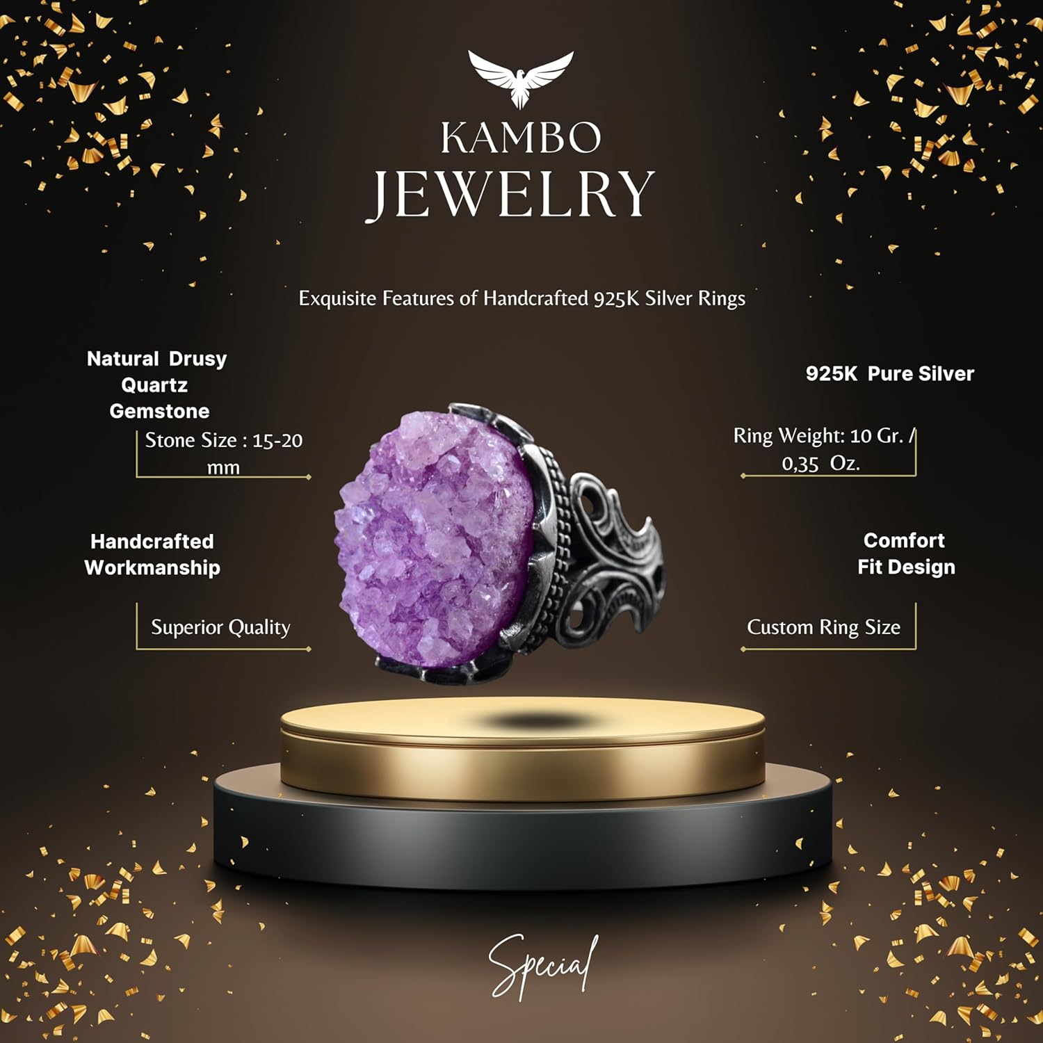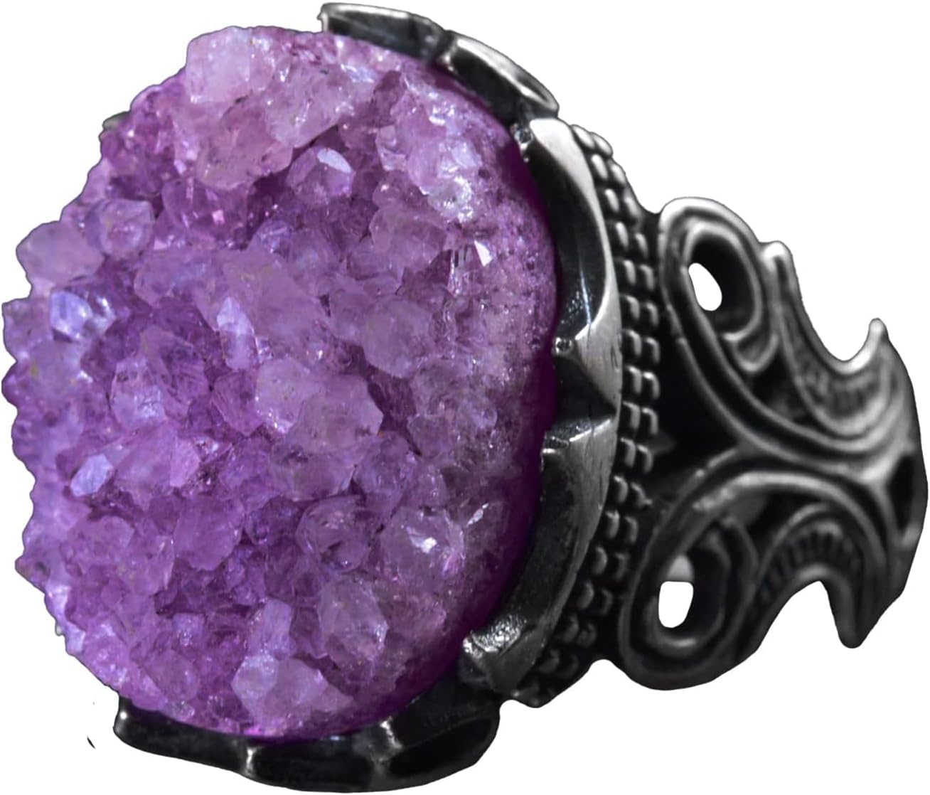 Gerçek Druzy Kuvars Taş Yüzük, 925 Ayar Gümüş Yüzük, Erkekler İçin Kartal Pençesi Yüzük