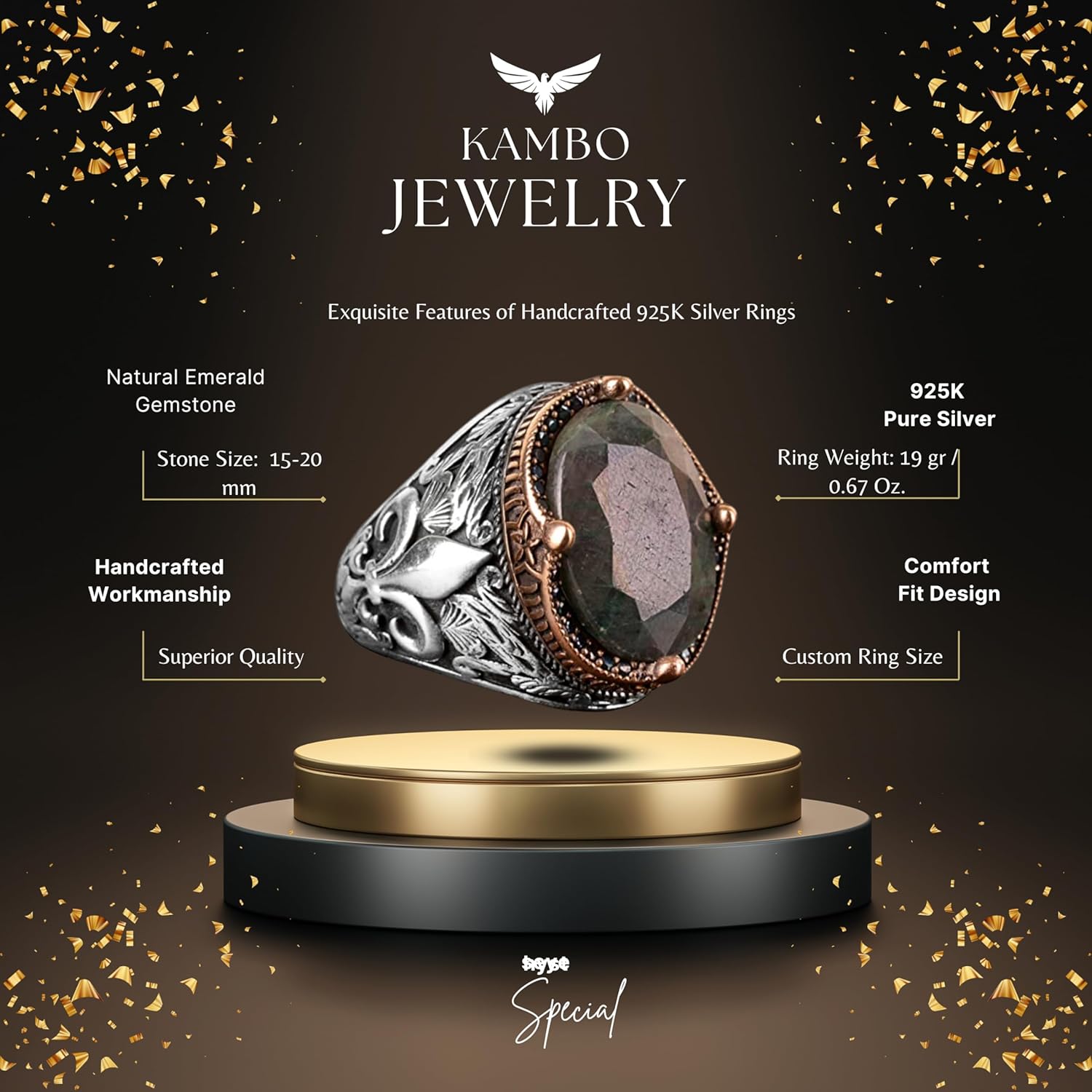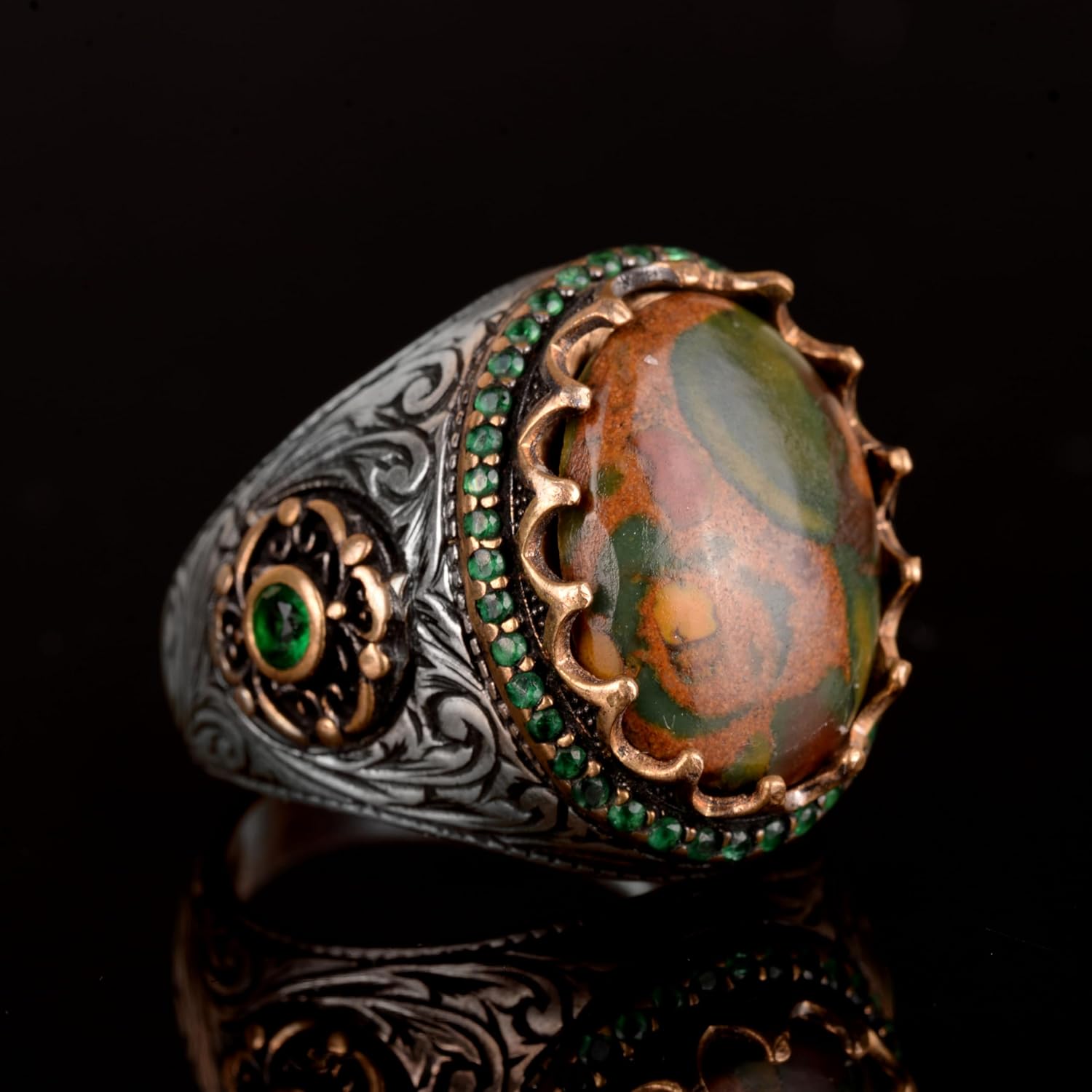 Gerçek Doğal Zümrüt Taşlı Yüzük, Gümüş Yüzük Erkekler İçin