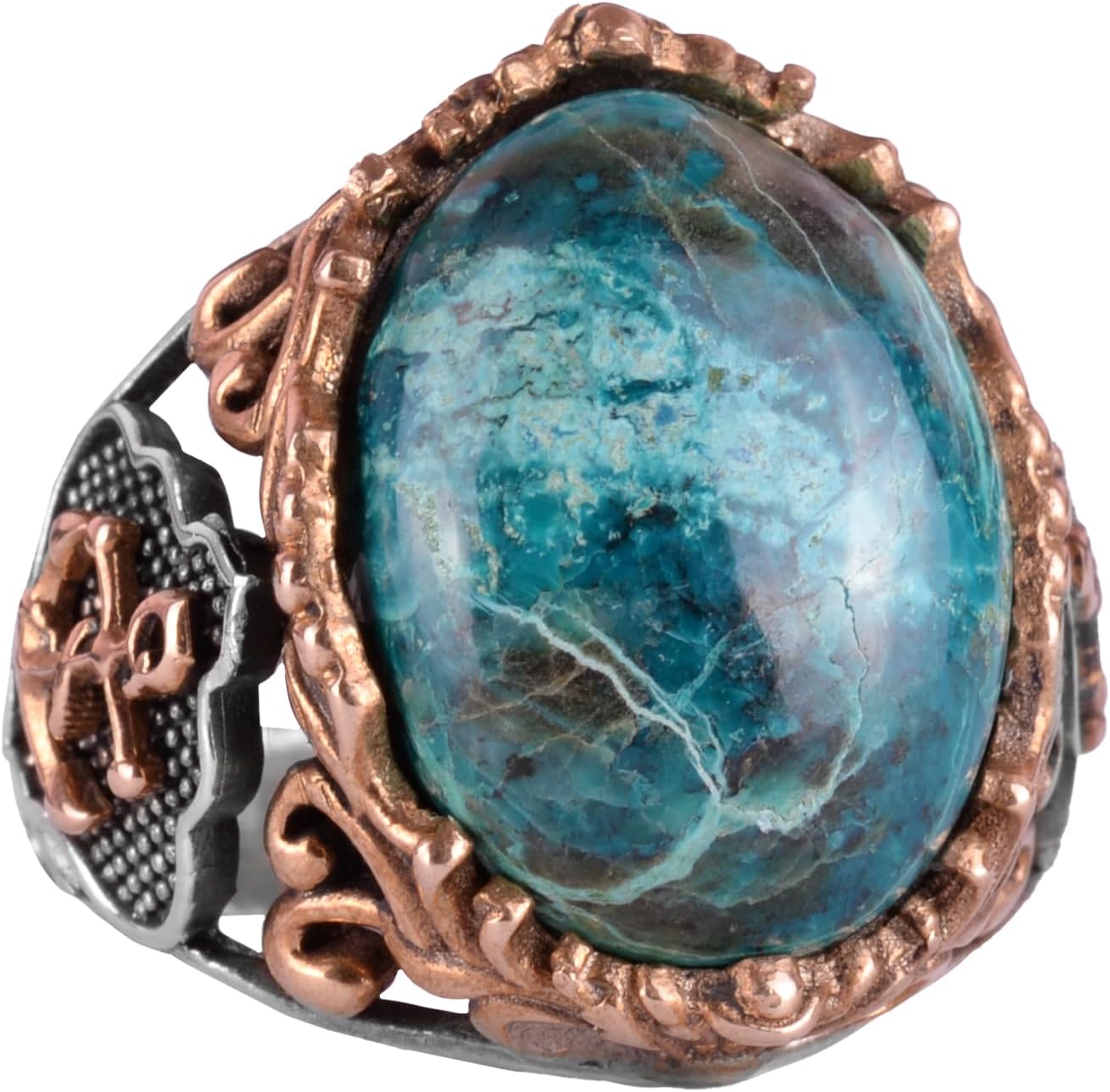 Gerçek Kaplan Göz Taşı Yüzük, Demir Yüzük, Denizci Erkek Yüzüğü, 925 Ayar Gümüş Yüzük (Krisokolla)
